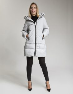 Giacca ibrida con cappuccio integrato. Zip con cursore principale logato e cursore invisibile che permetta l'apertura anche del fondo.