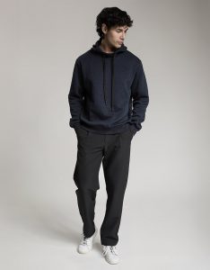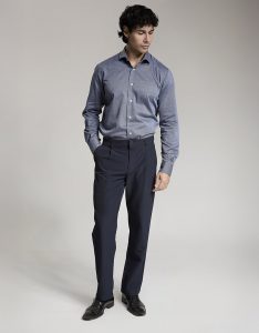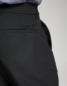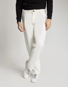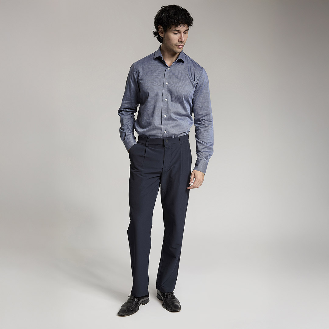 Pantalone con doppia pinces in tessuto tecnico stretch.