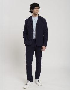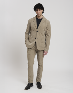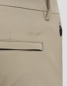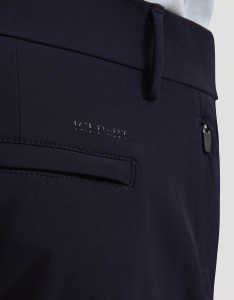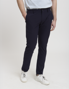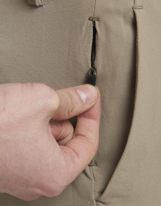 • Concept: Pantalone chino elasticizzato . Bottone a gancio . Tasca di sicurezza con zip invisibile nel fianco .Tasca posteriore a destra con zip e a sinistra a “filetto”