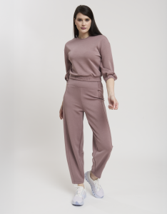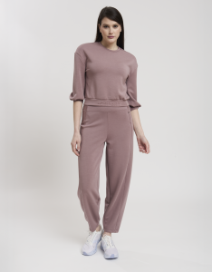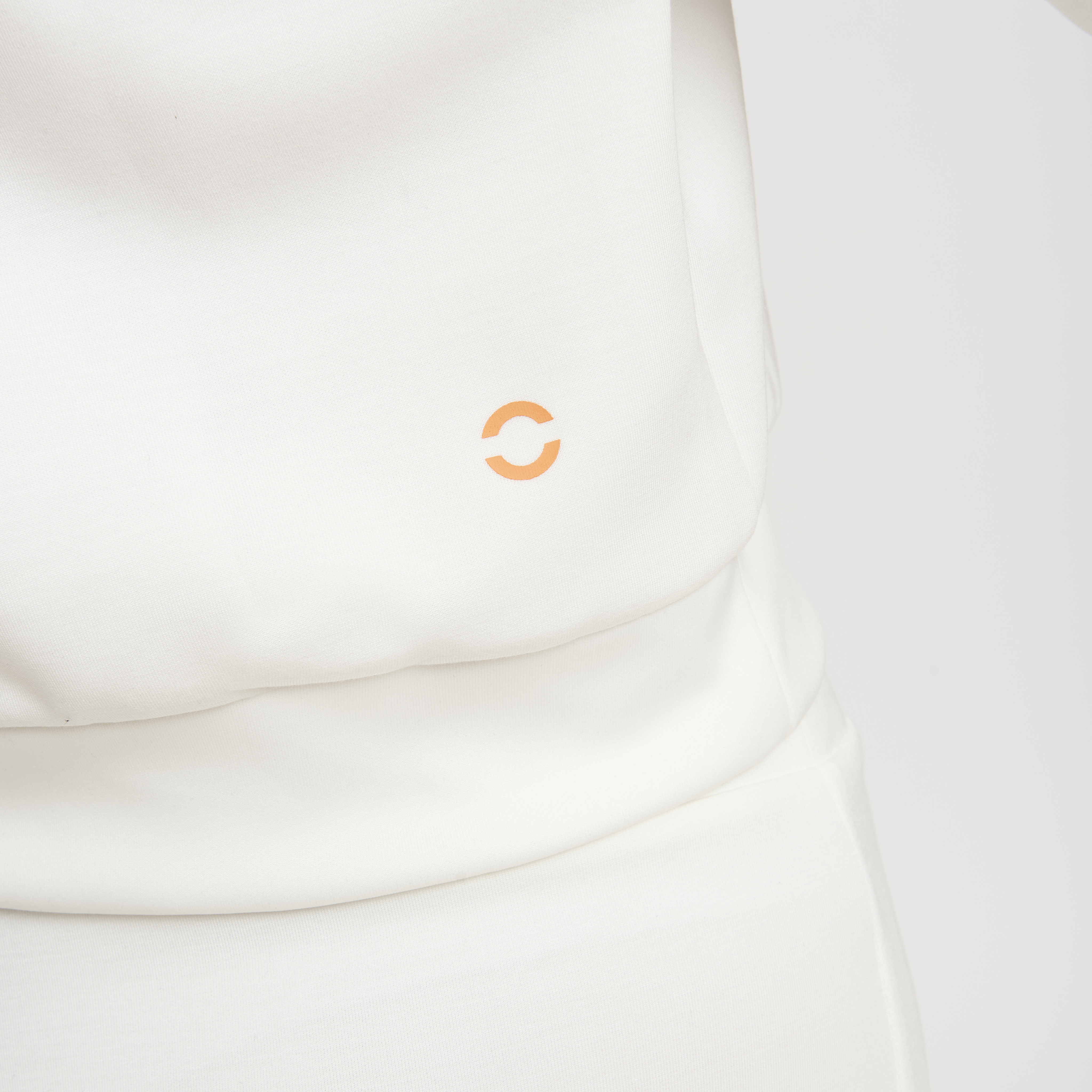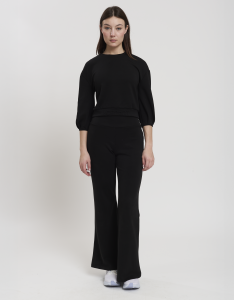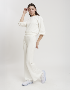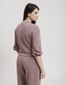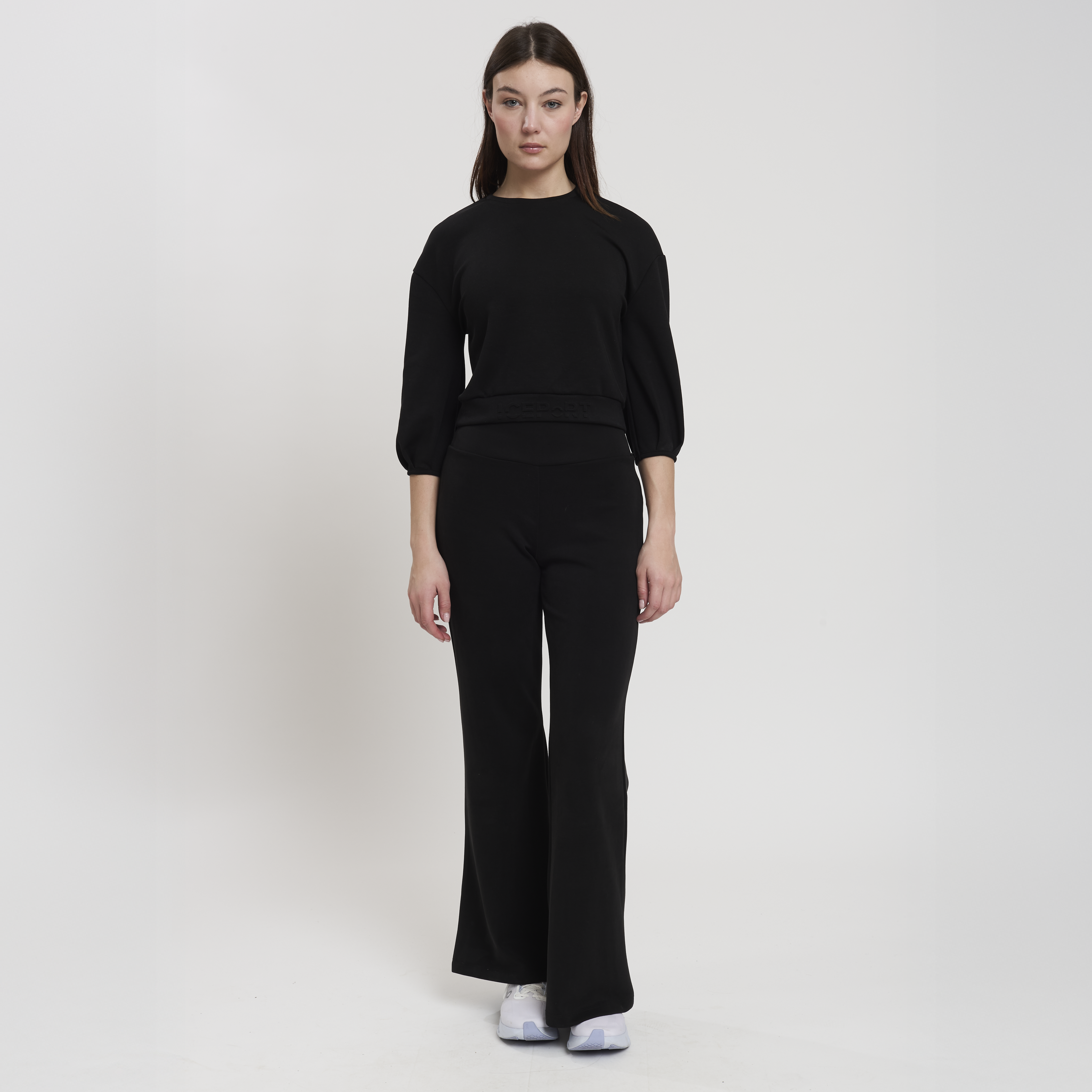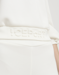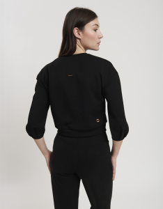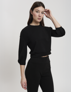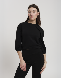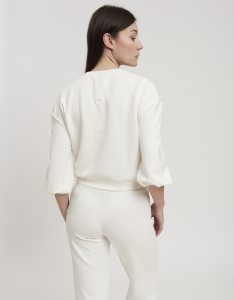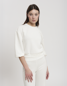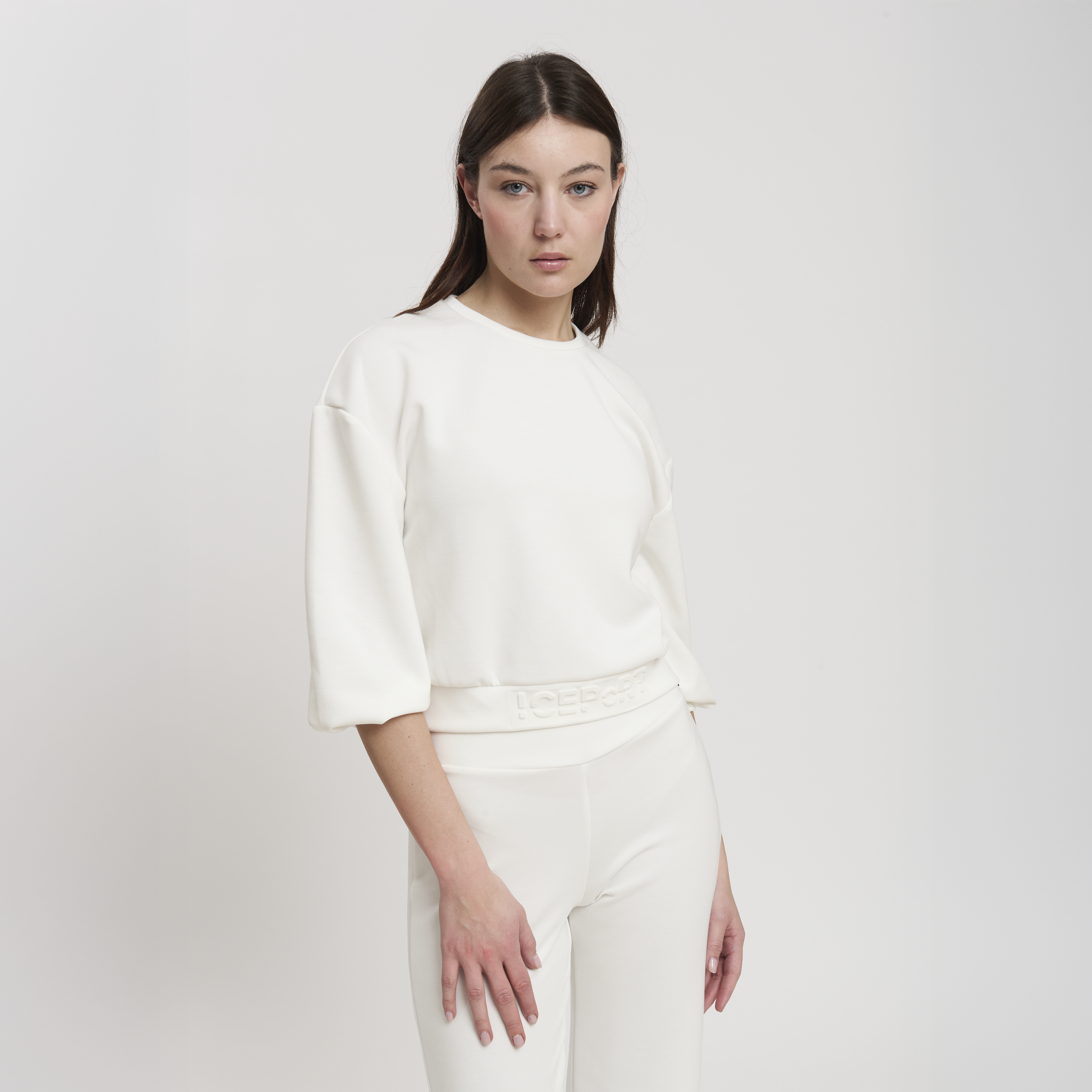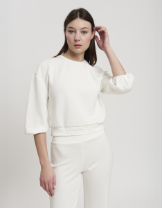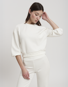 • Concept: Felpa crop girocollo con spalla scesa. Manica a palloncino lunghezza ¾ con motivo di pieghe. Logo embossed su fondo davanti.