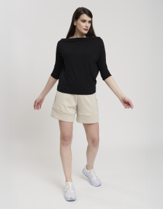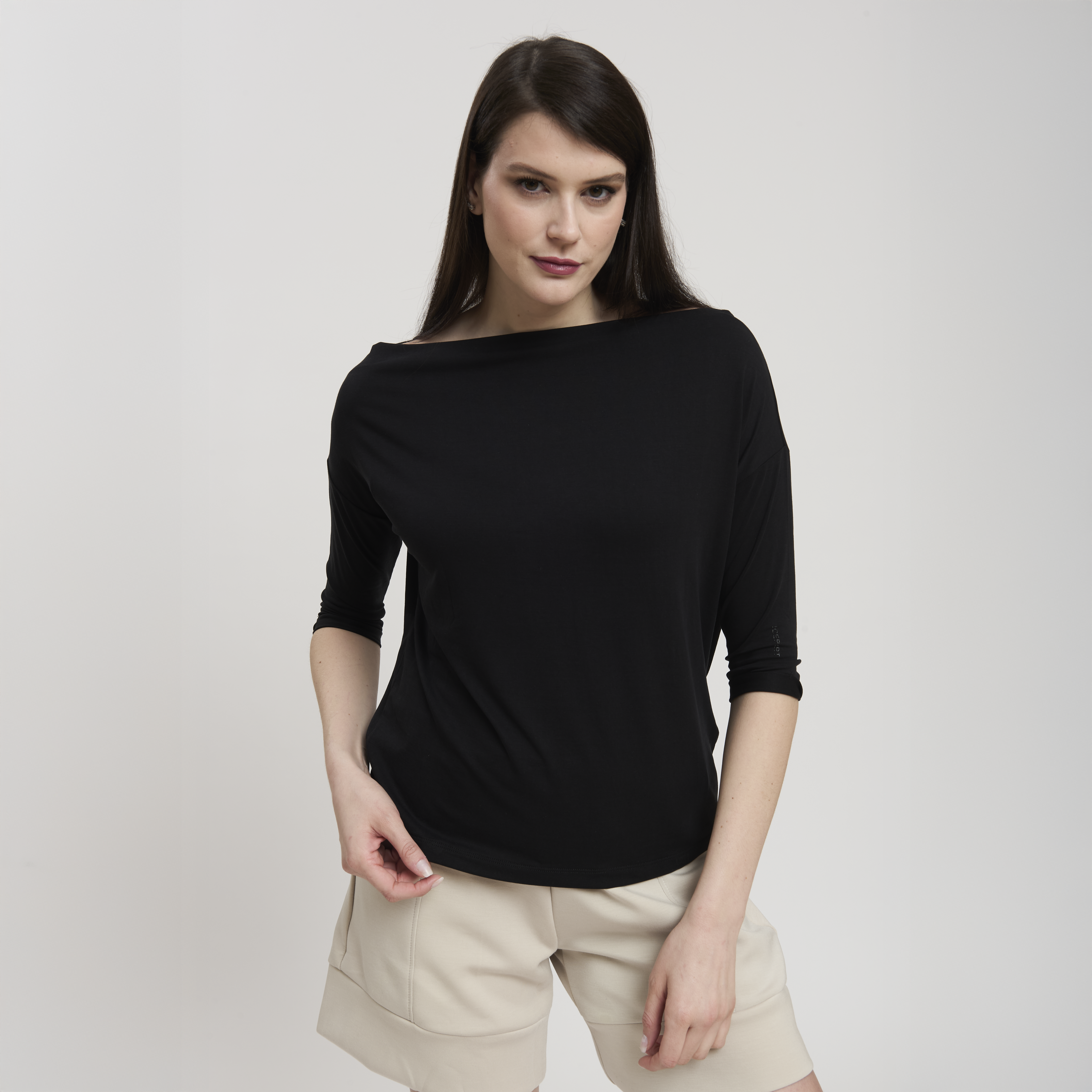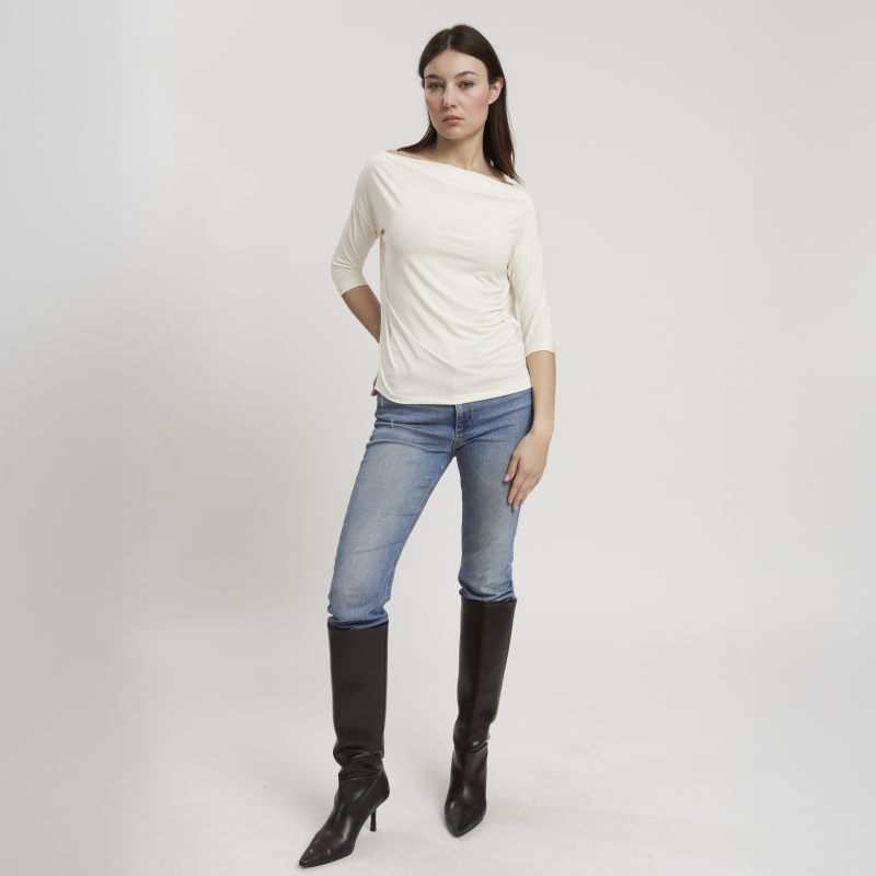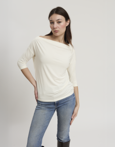 • Concept: t-shirt con collo ampio che lascia le spalle scoperte