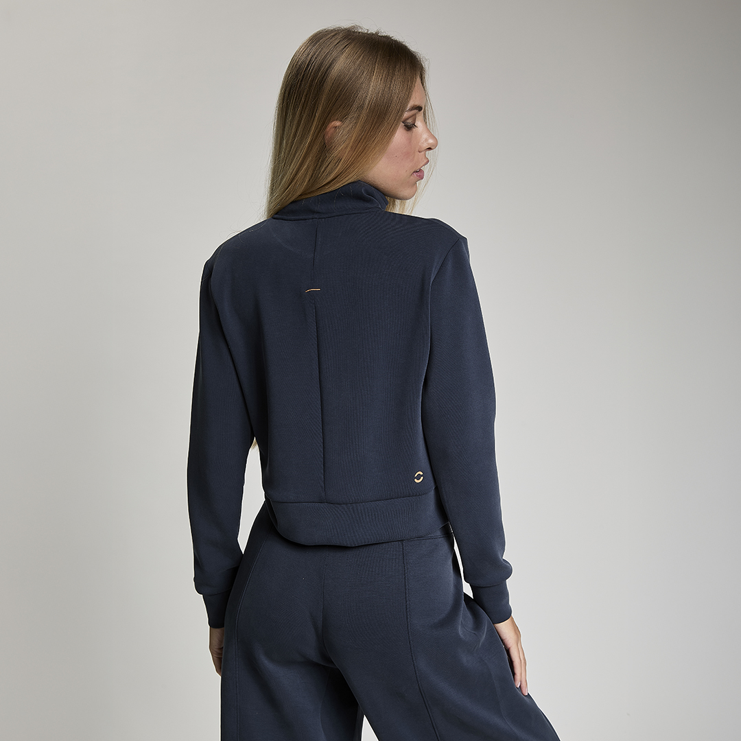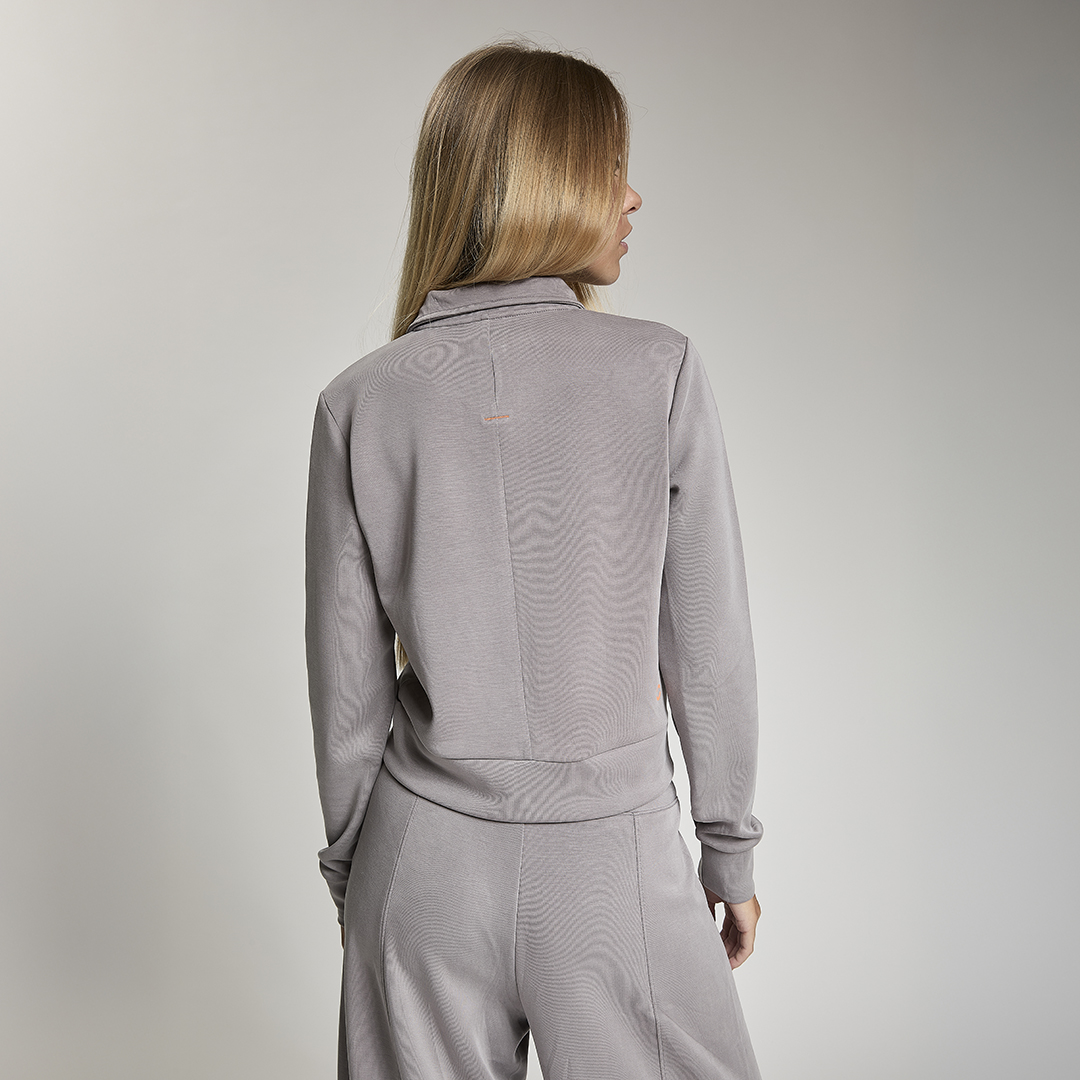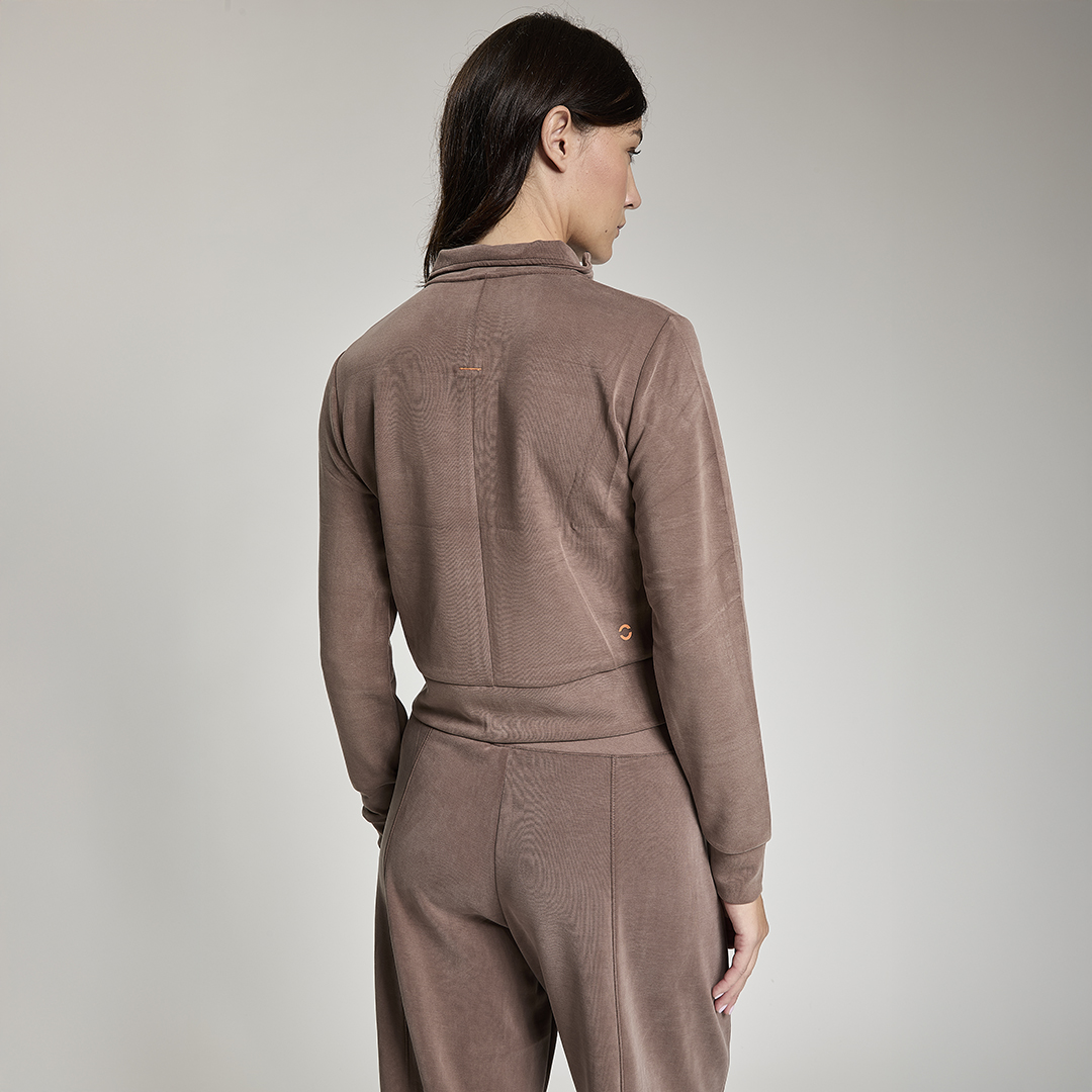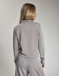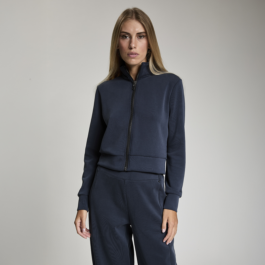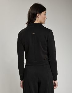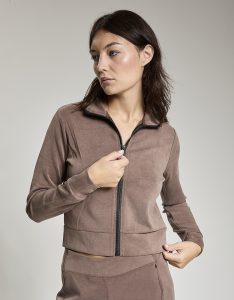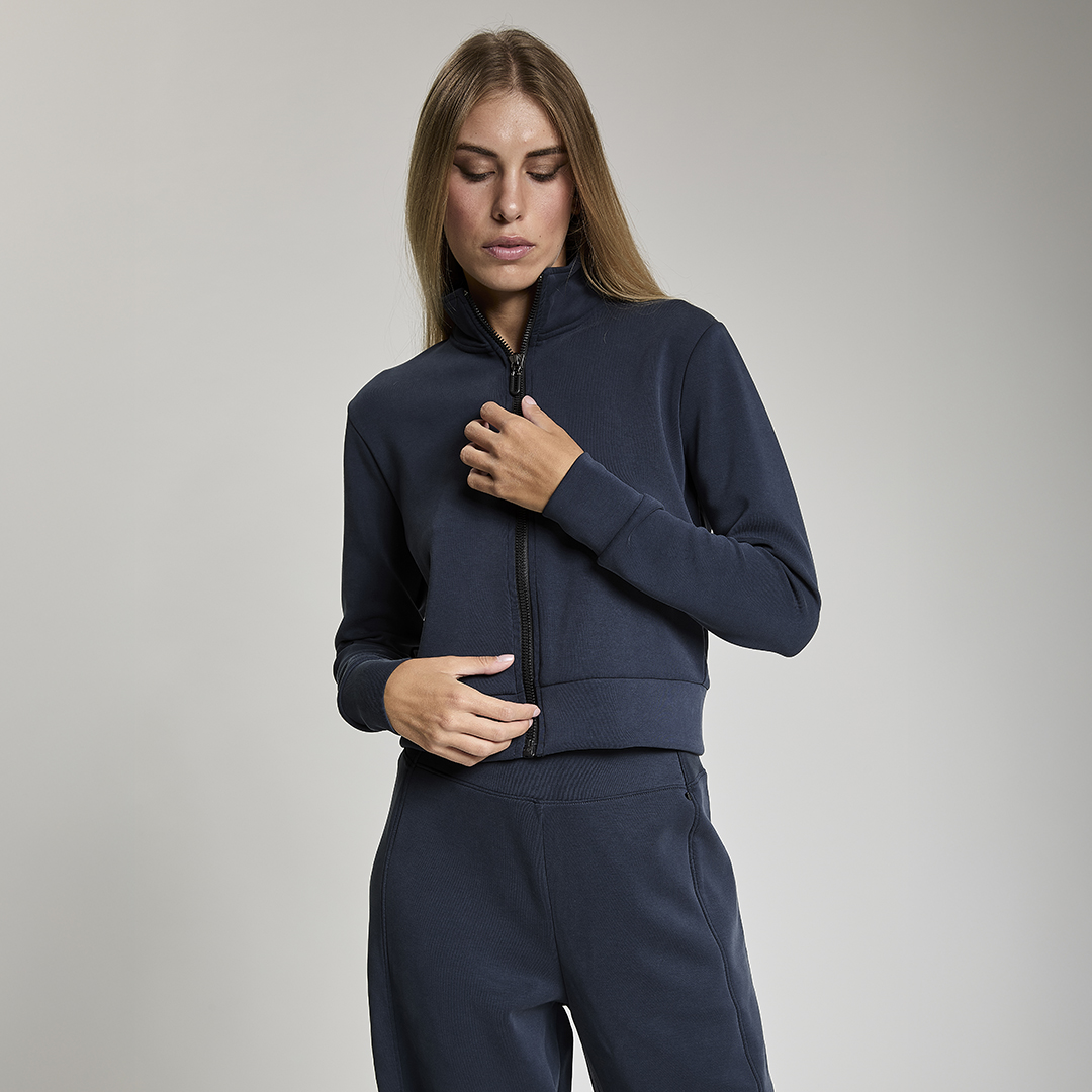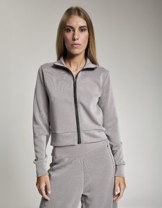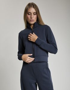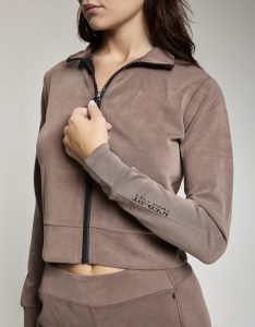Felpa crop full zip. Tessuto in felpa tecnica “wear a hug”. Morbido soffice e leggero.