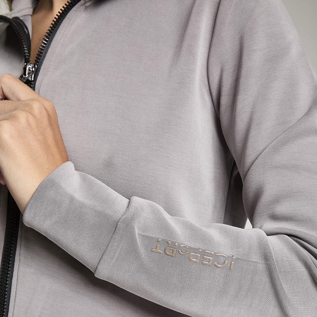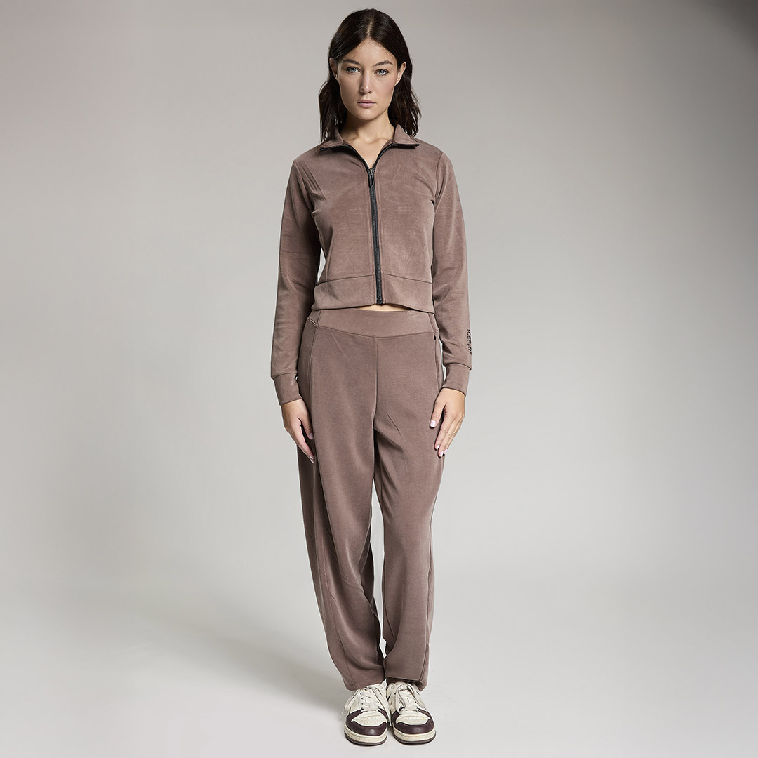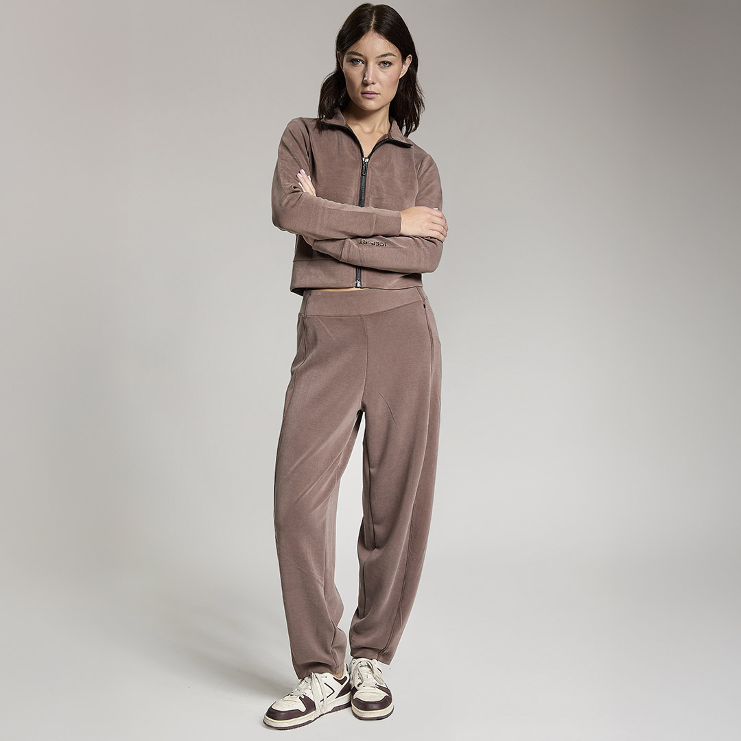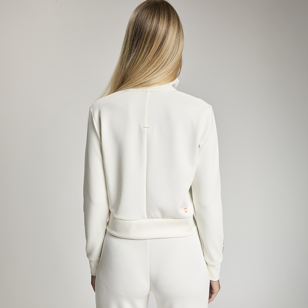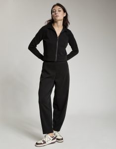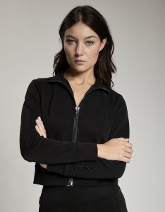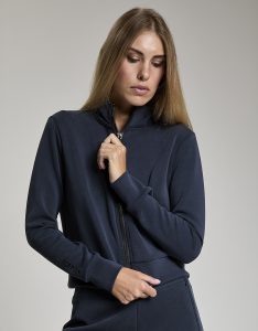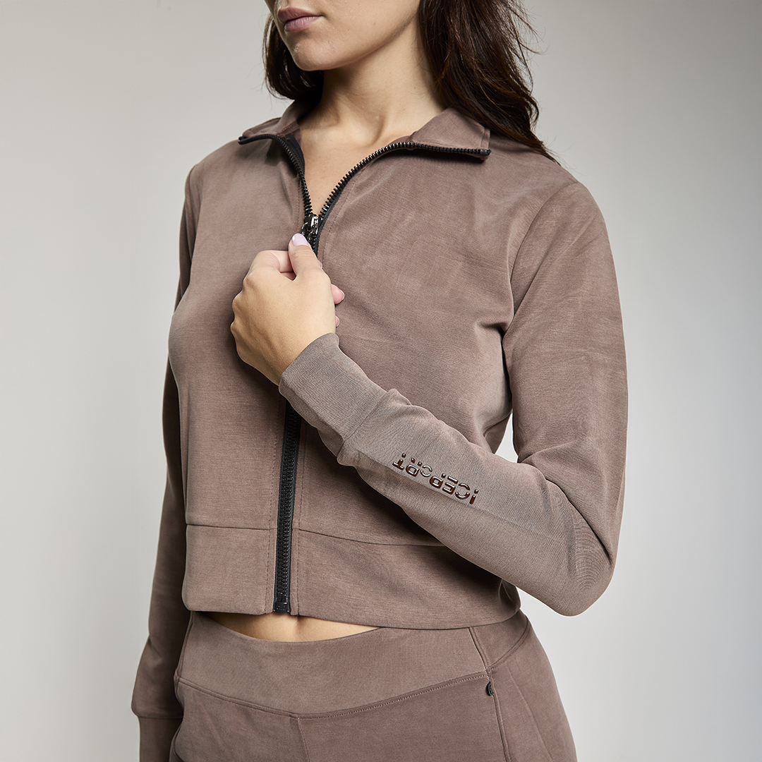 Felpa crop full zip. Tessuto in felpa tecnica “wear a hug”. Morbido soffice e leggero.