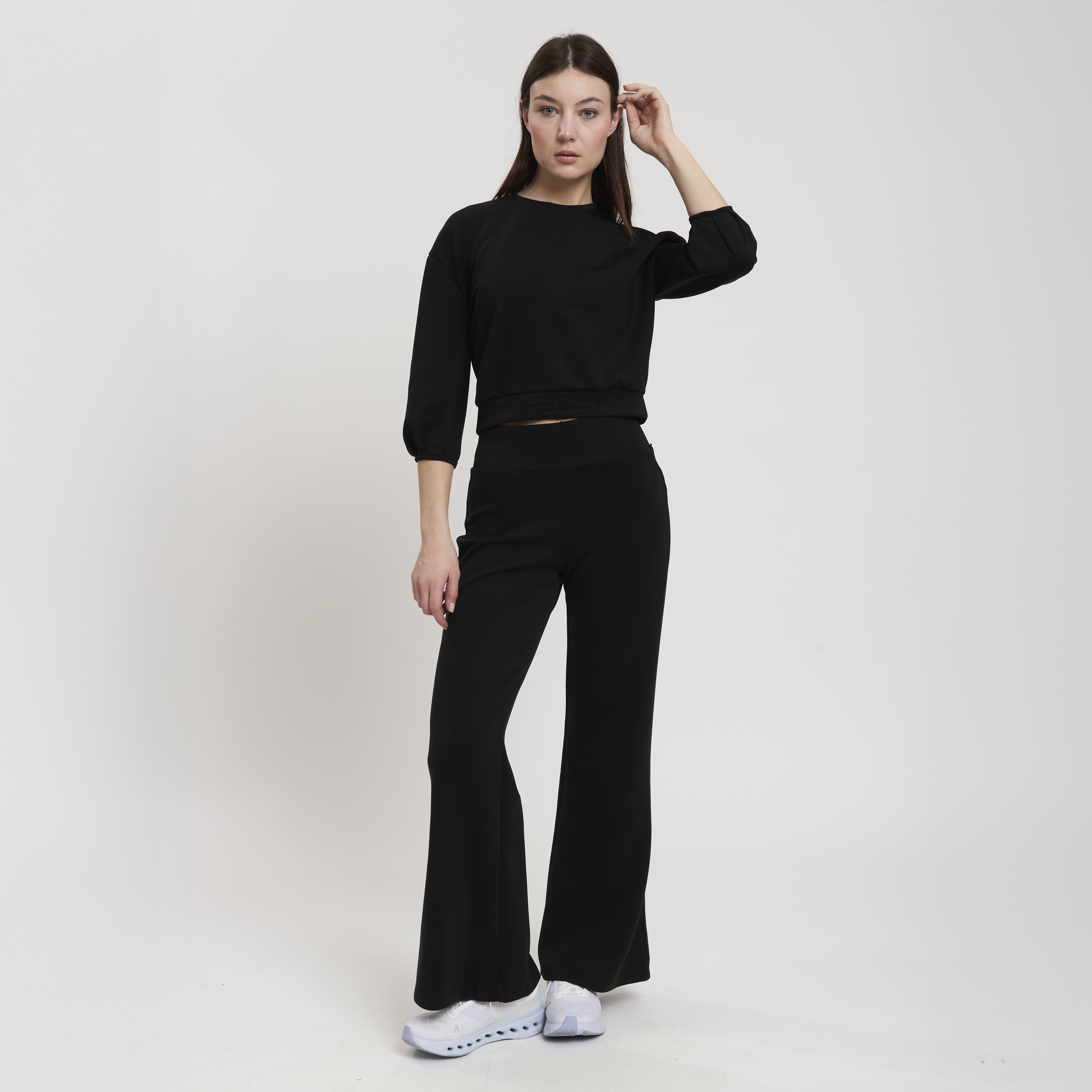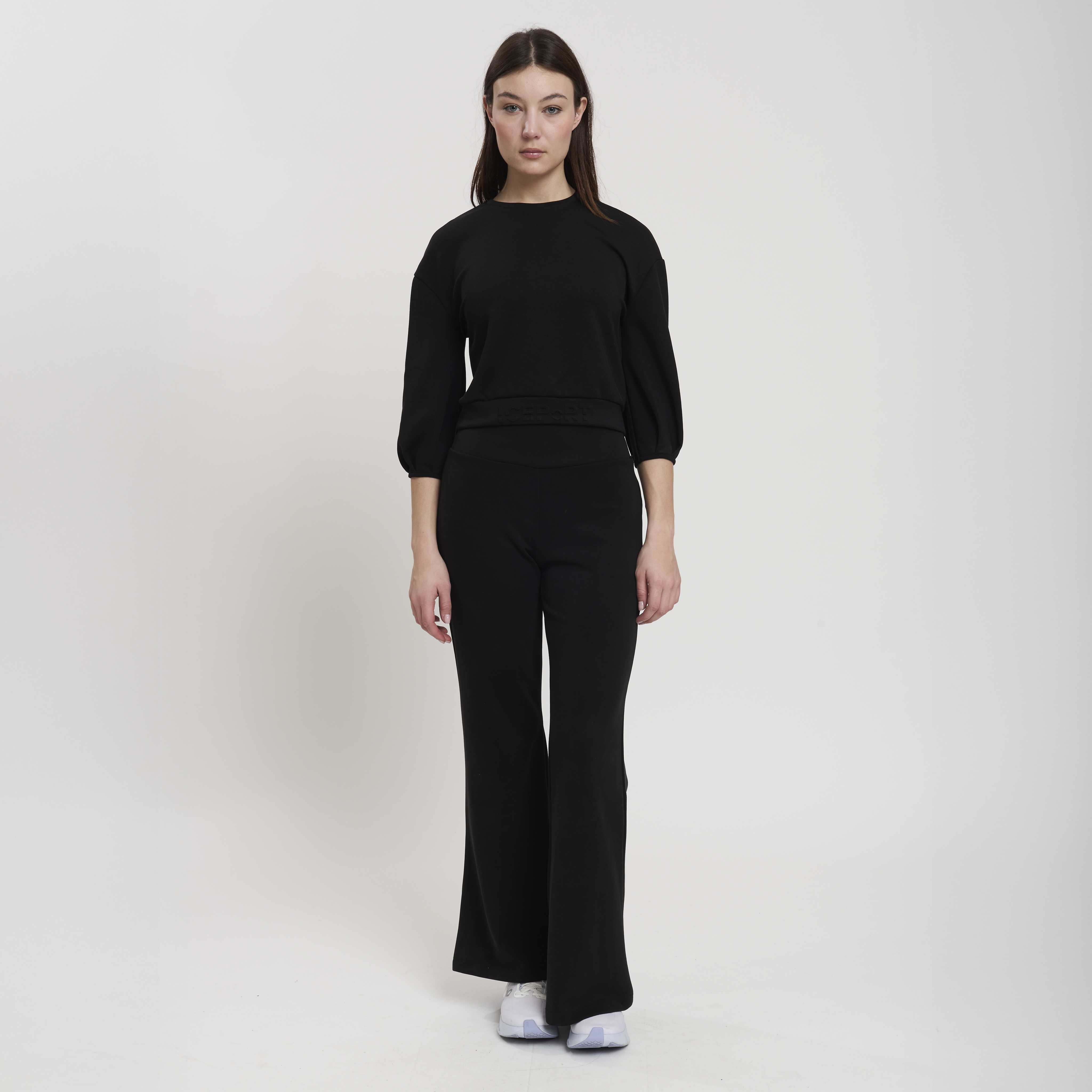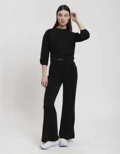 • Concept: Pantalone flare a vita alta. Lunghezza gamba regular.