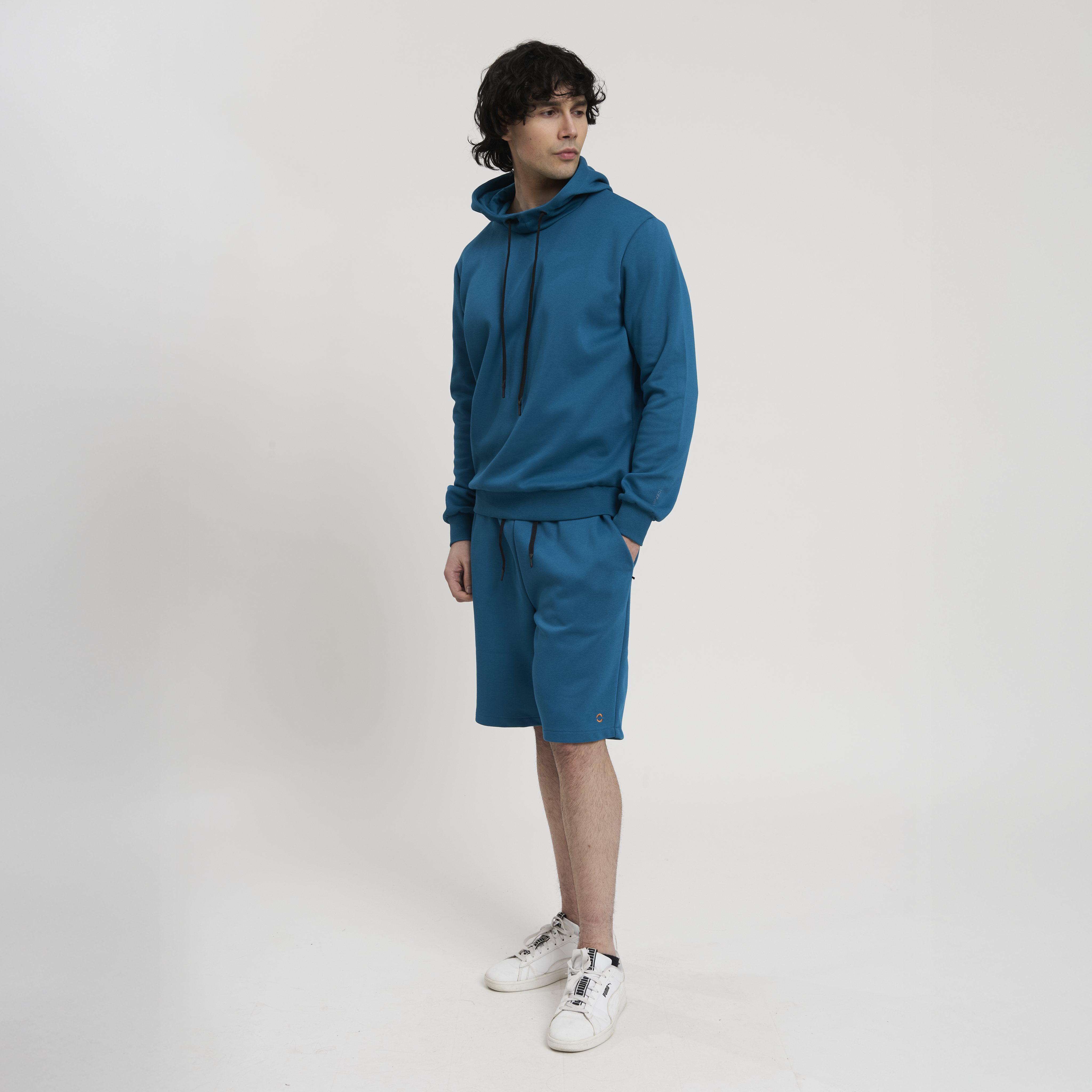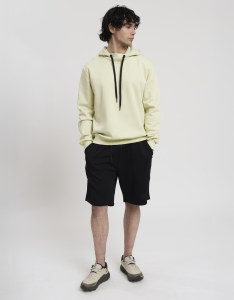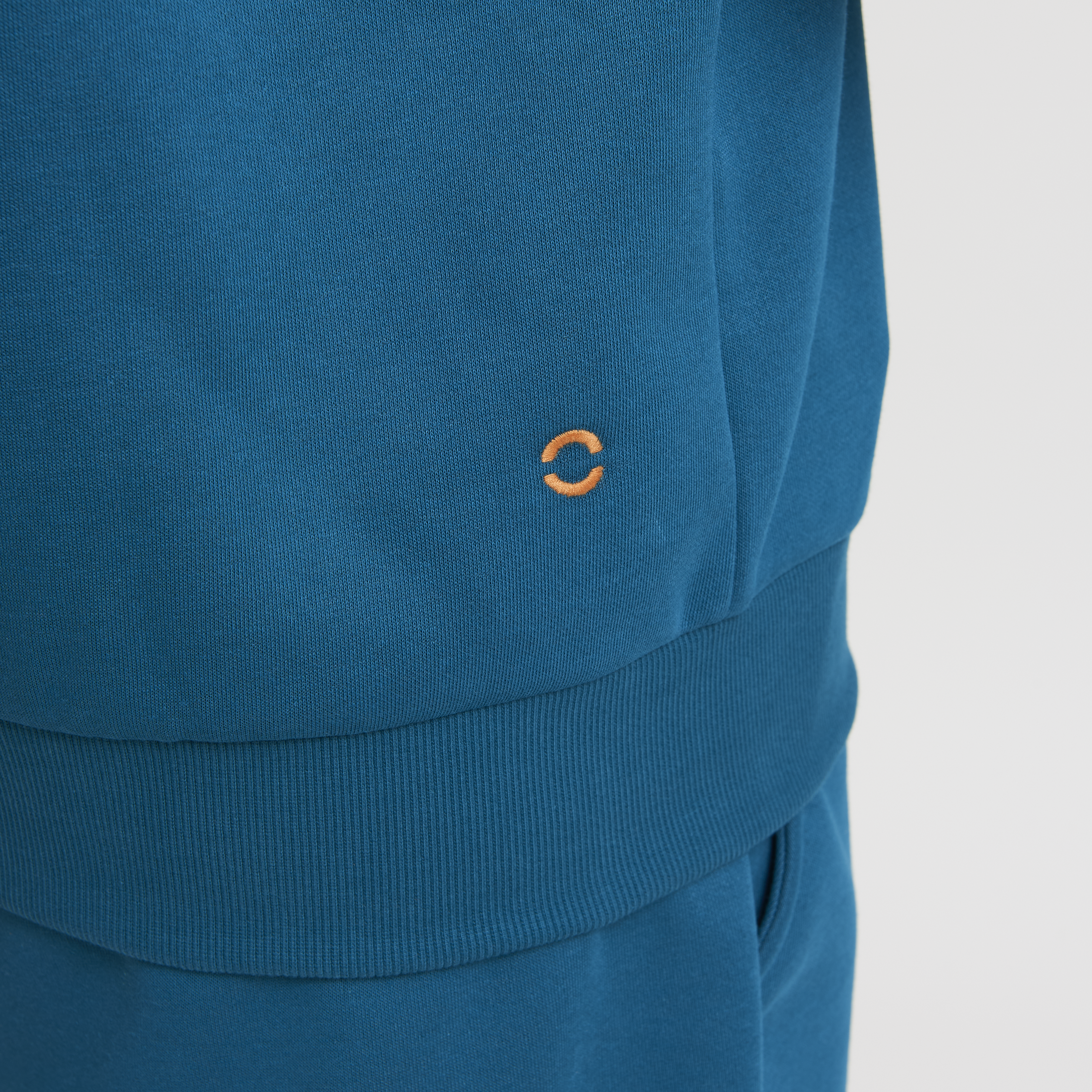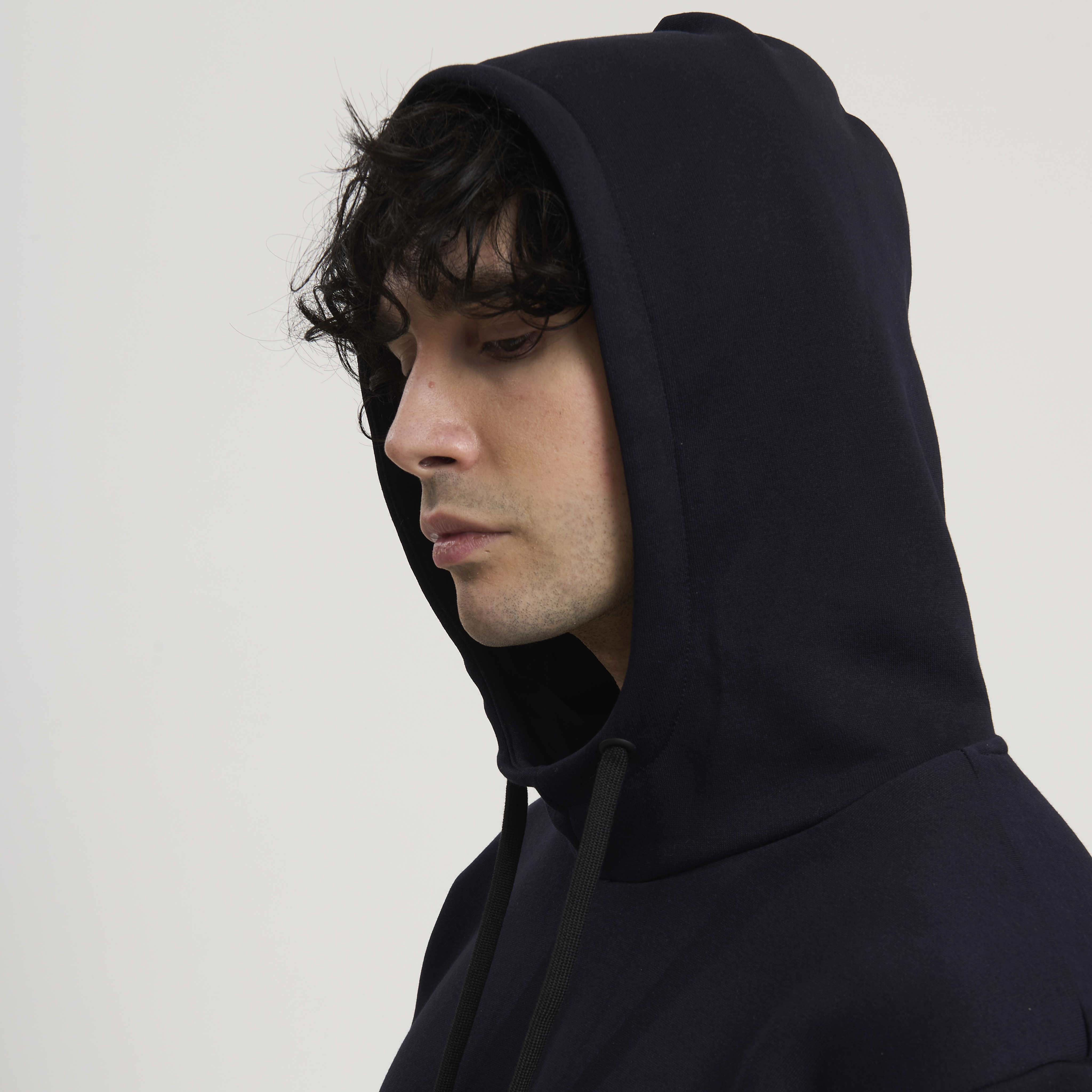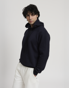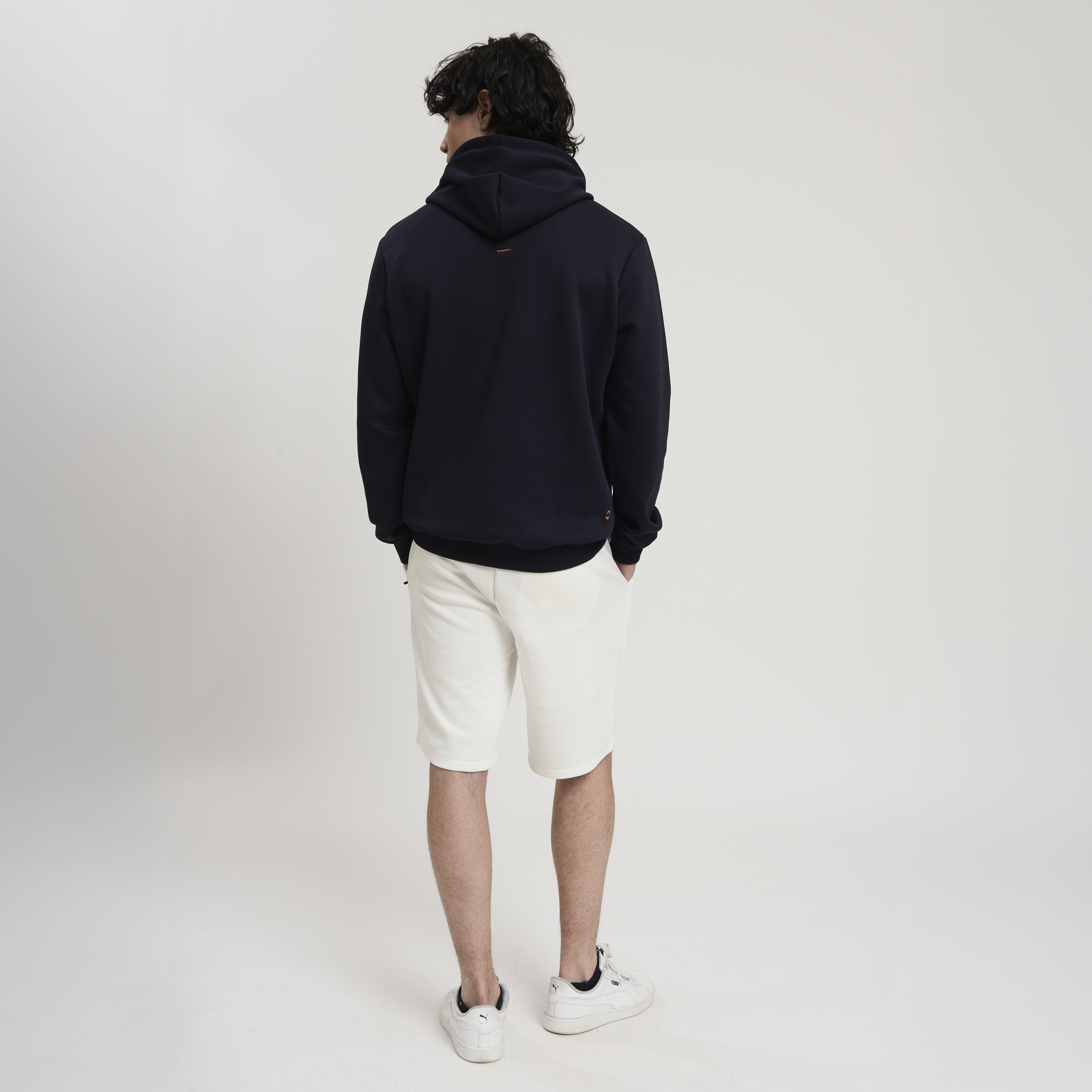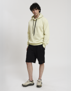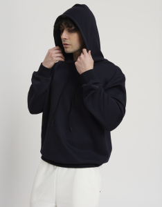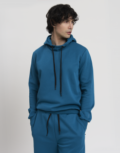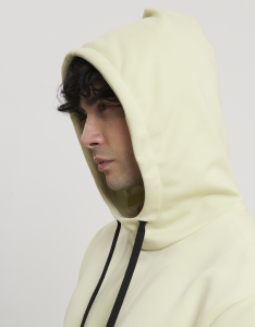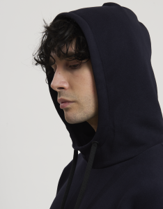 • Concept: Felpa chiusa con cappuccio e cordino gommato. Costina per polso e fondo.