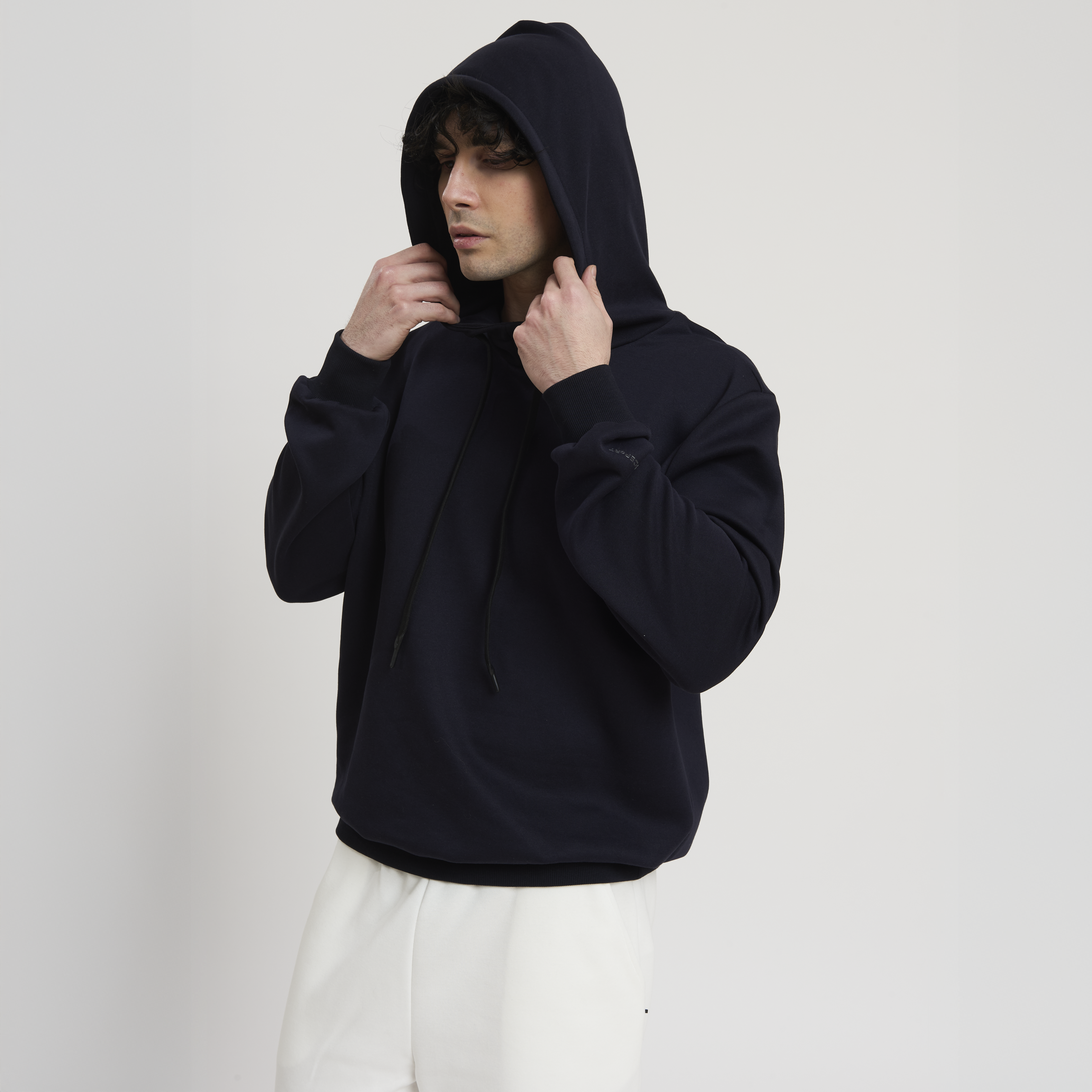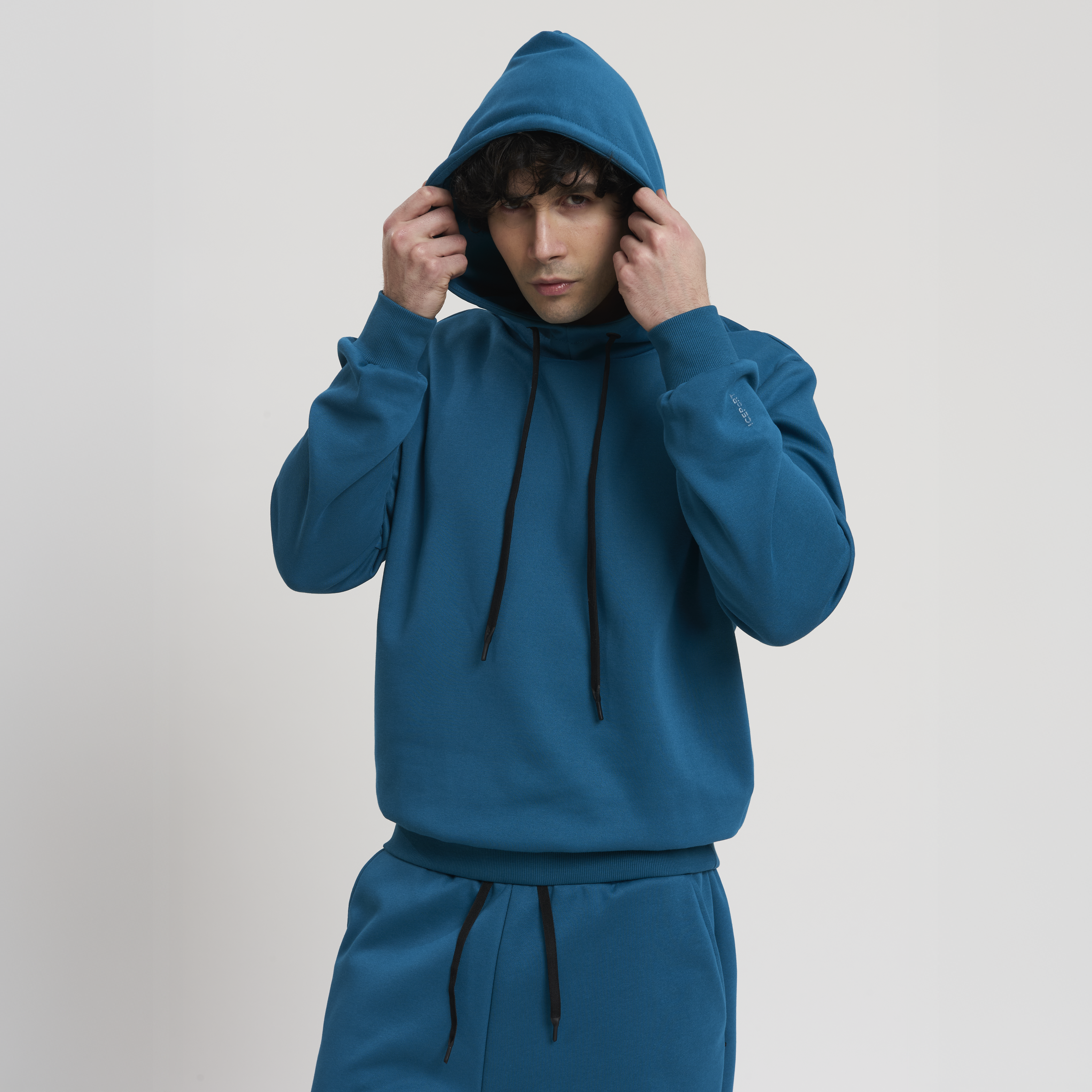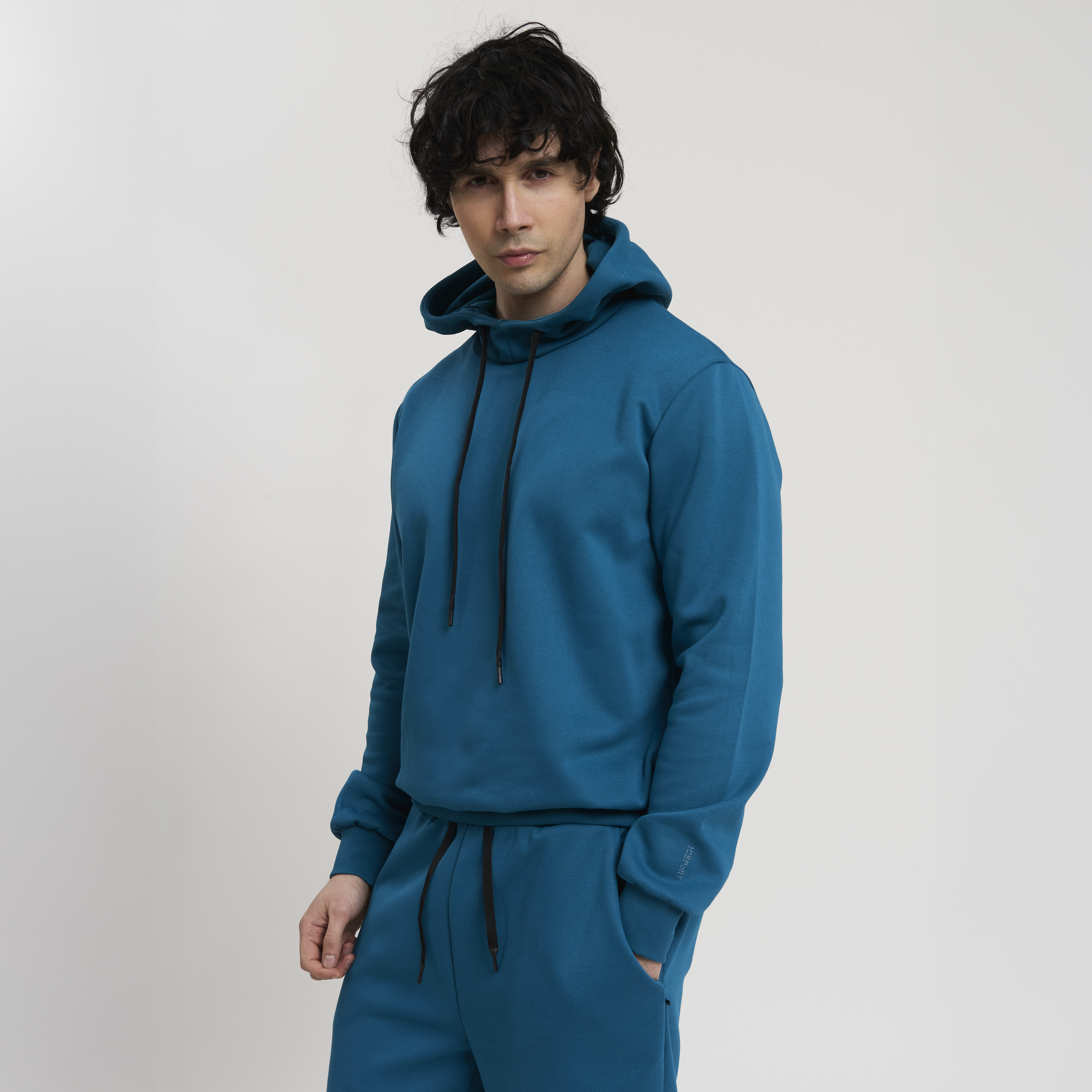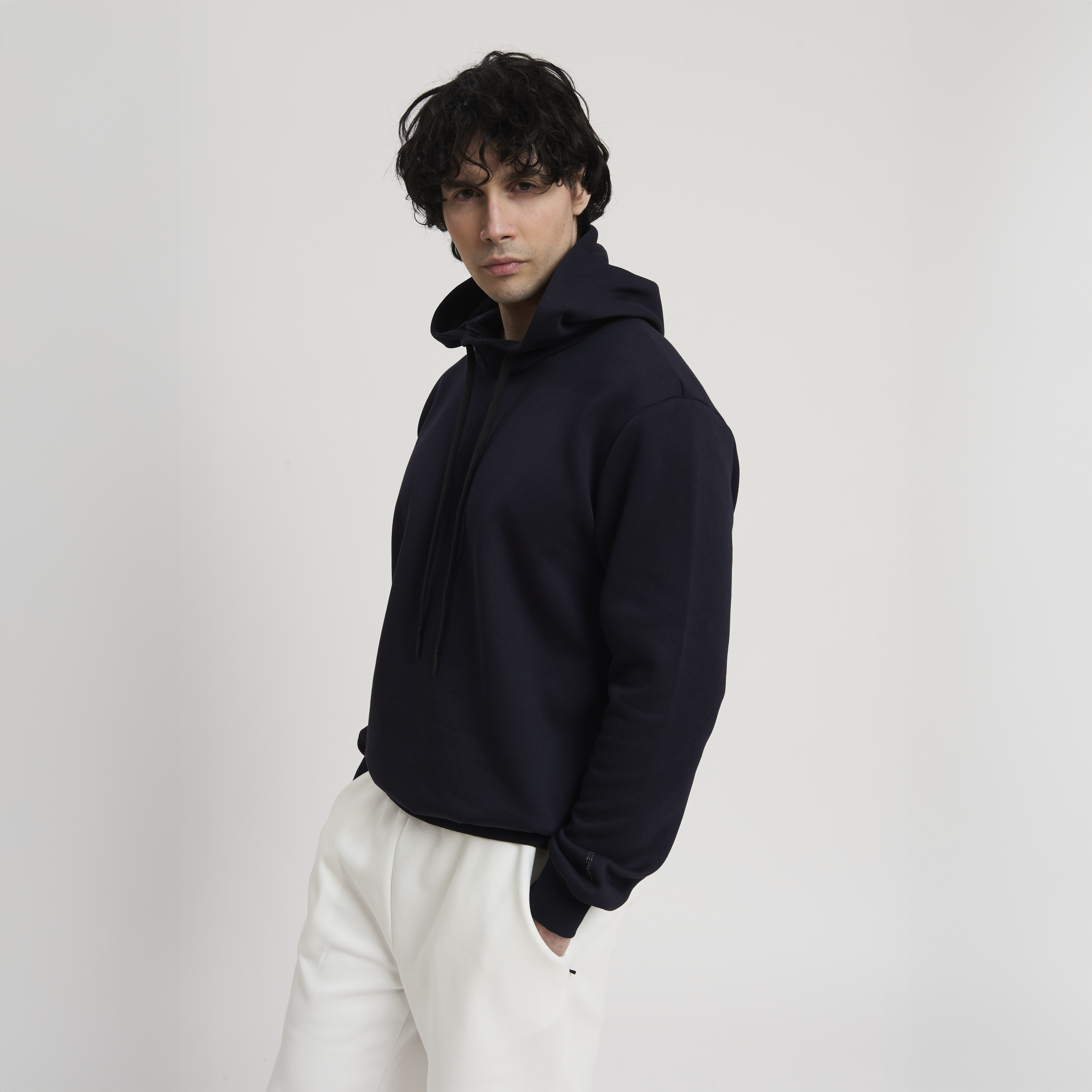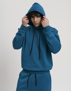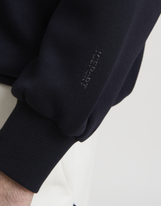 • Concept: Felpa chiusa con cappuccio e cordino gommato. Costina per polso e fondo.