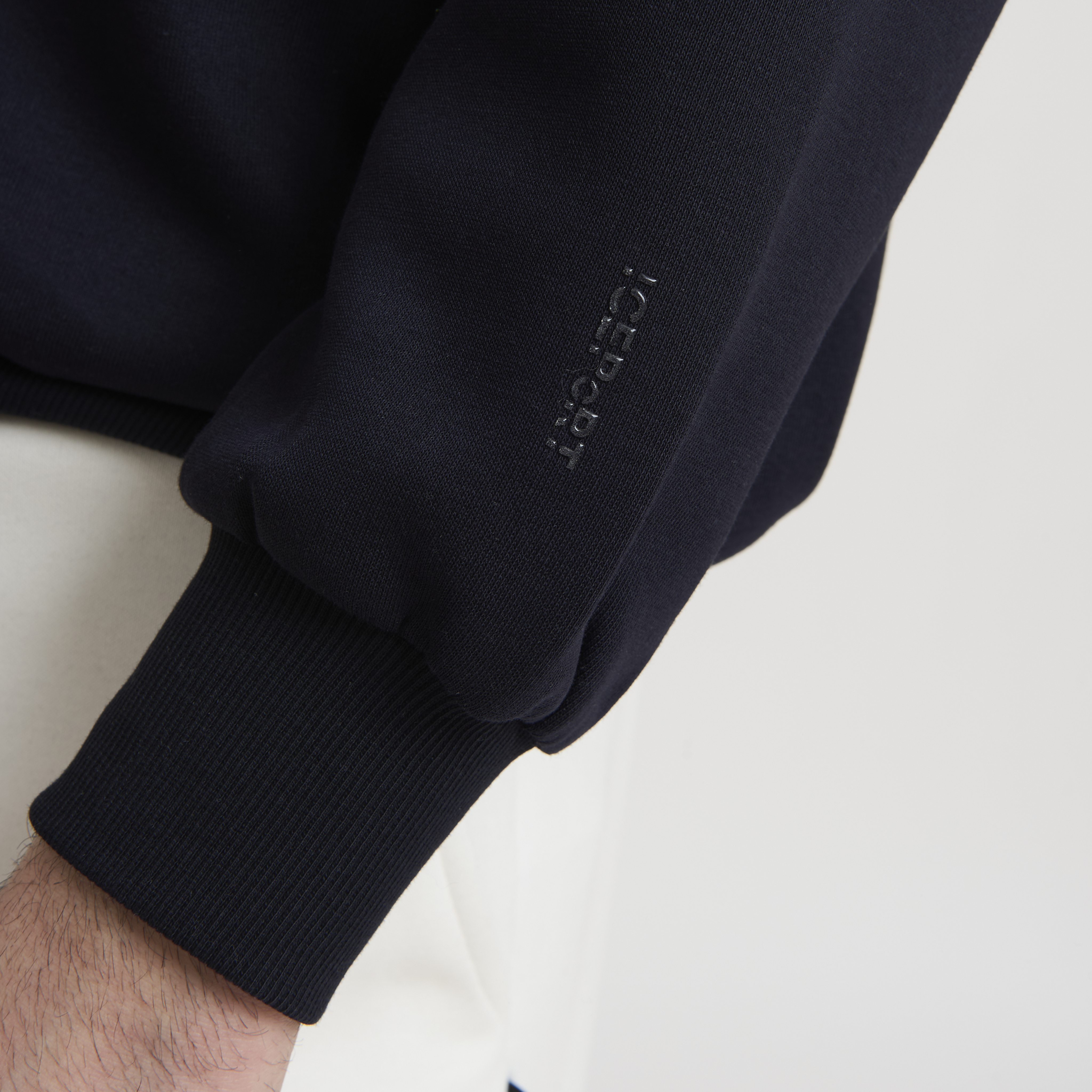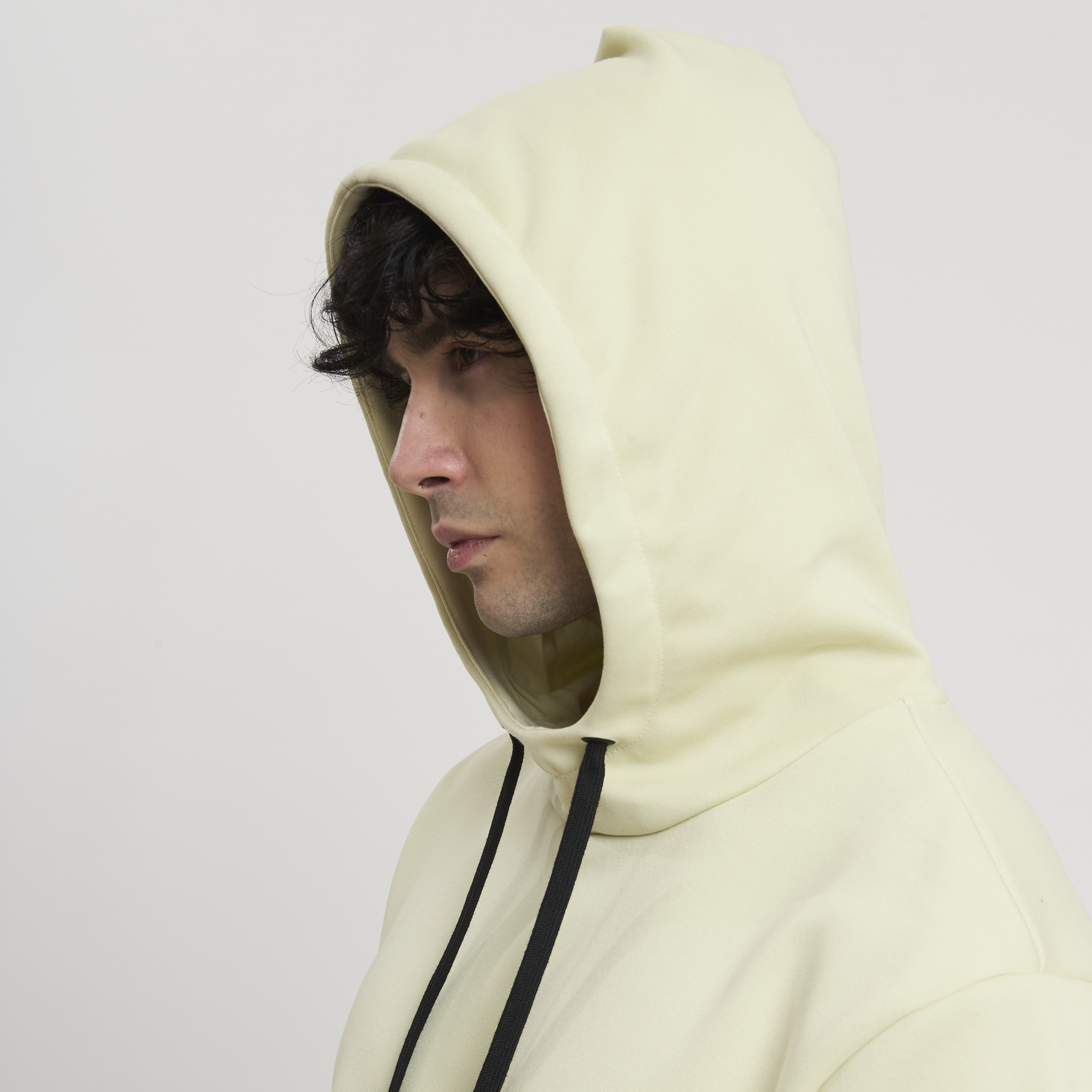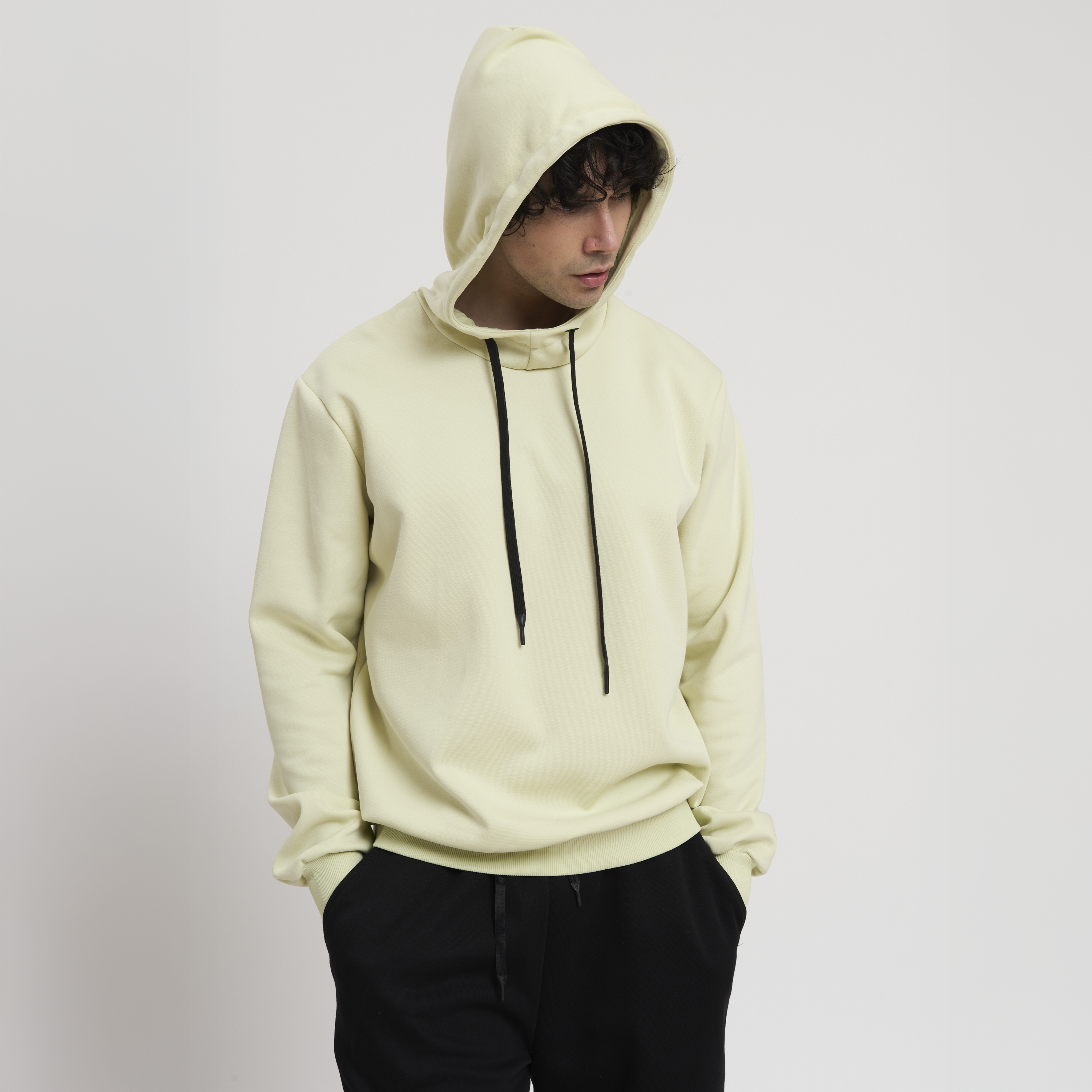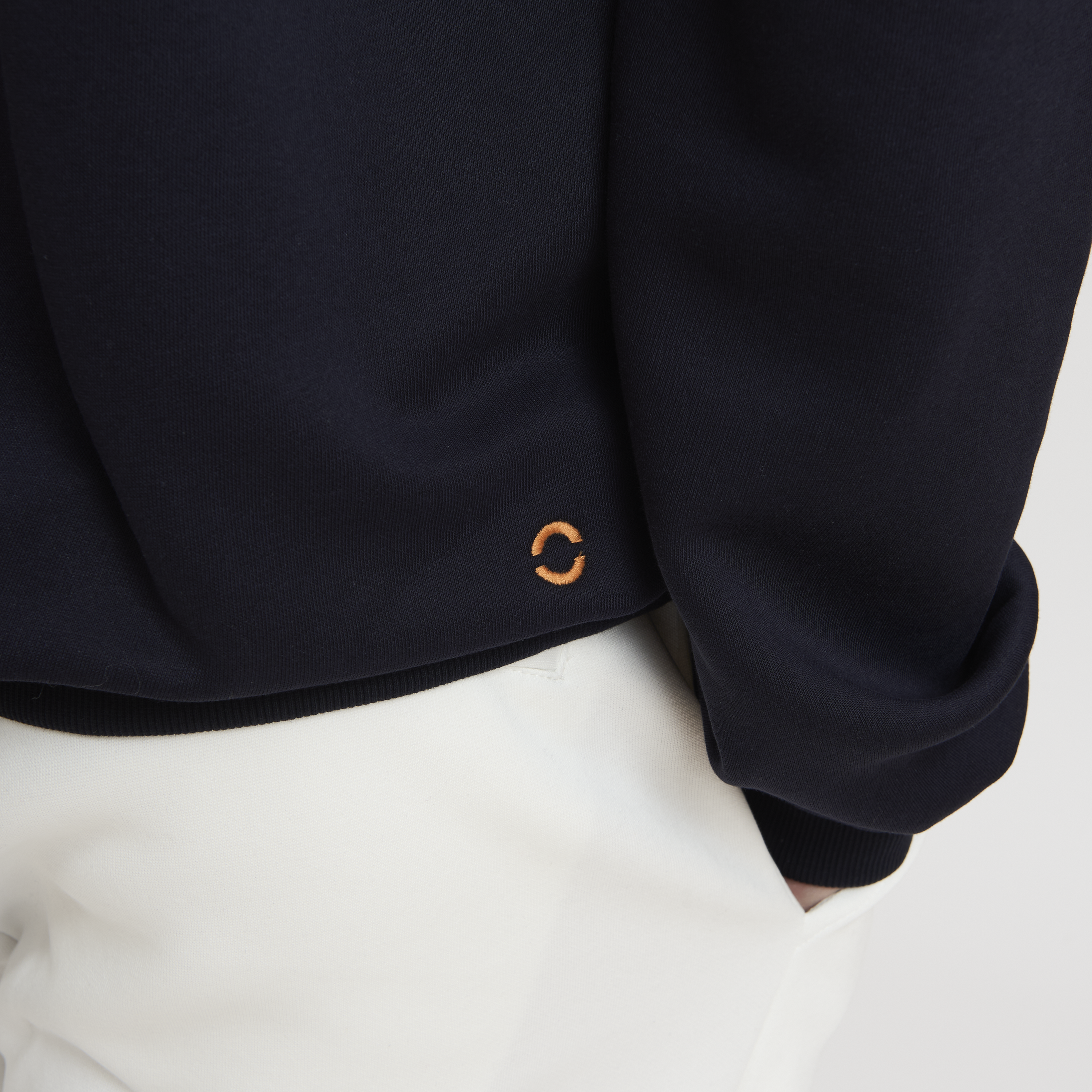 • Concept: Felpa chiusa con cappuccio e cordino gommato. Costina per polso e fondo.
