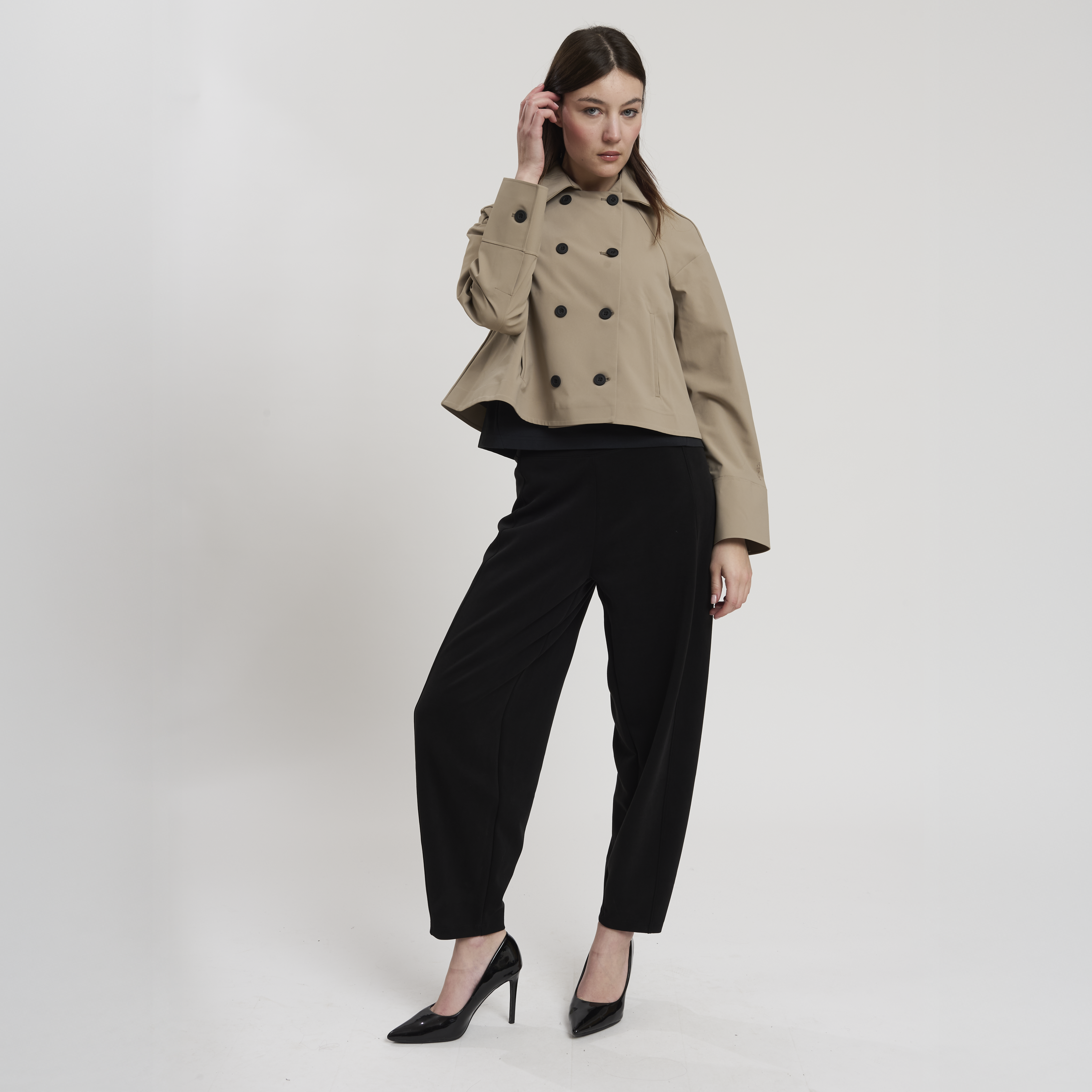 • Concept: Pantalone balloon con motivo a nervatura centrale davanti e dietro. Lunghezza gamba regular.