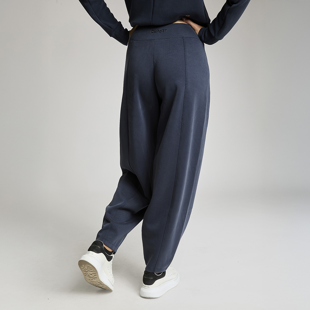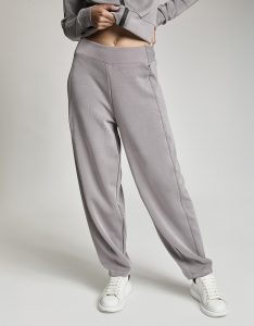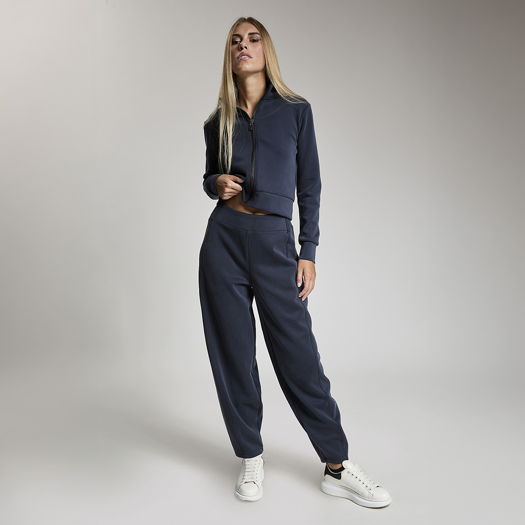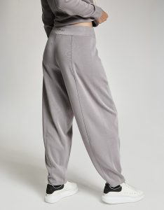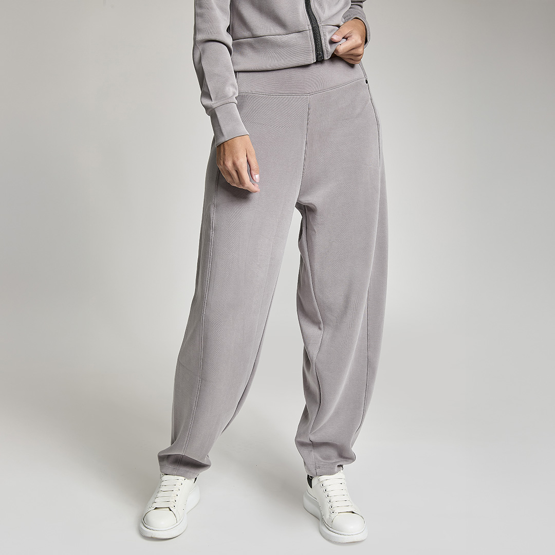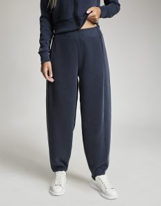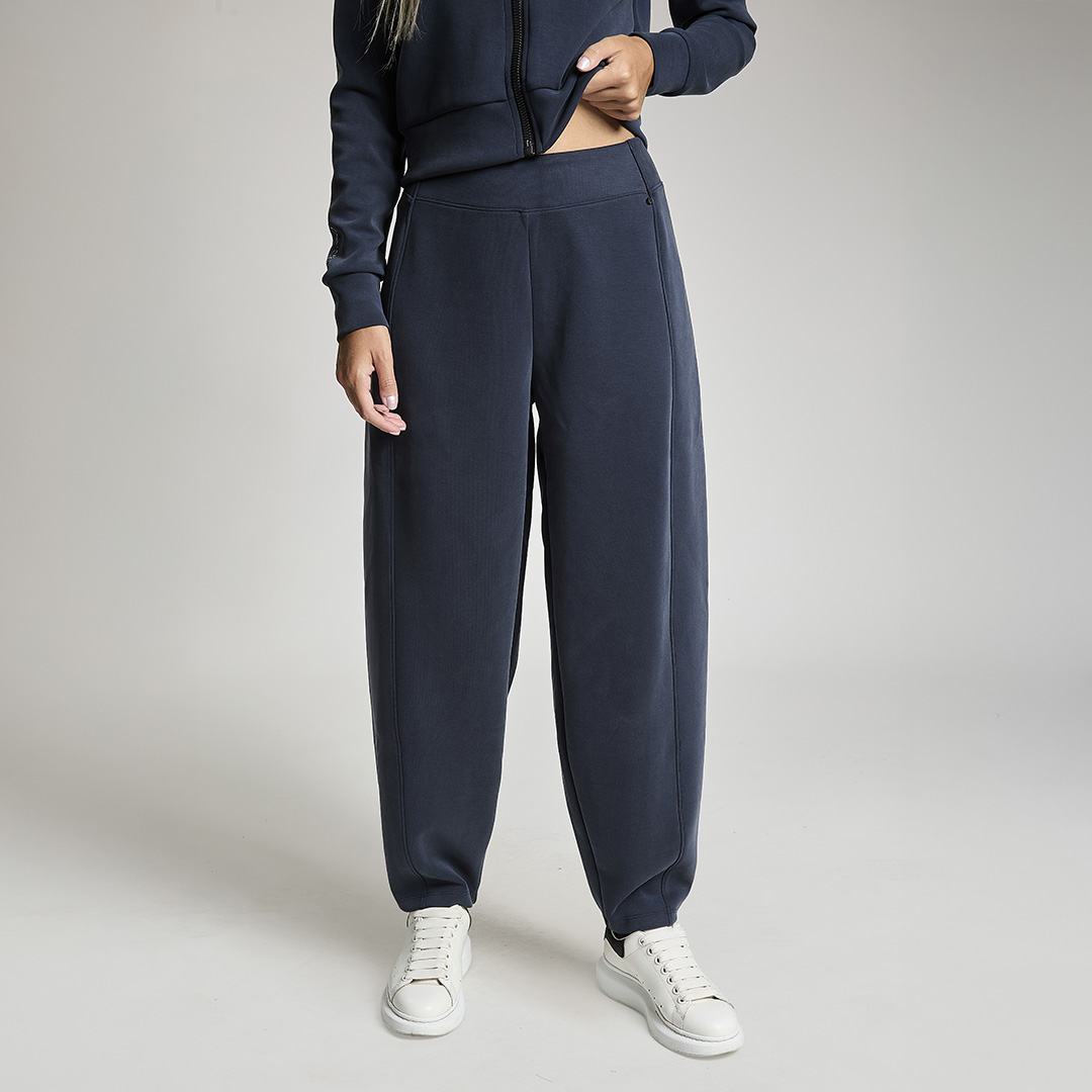 Pantalone baloon con vita gommata all' interno antiscivolo. Tessuto in felpa. Tessuto in felpa tecnica. Tessuto in felpa tecnica “wear a hug”. Morbidi soffice e leggero.