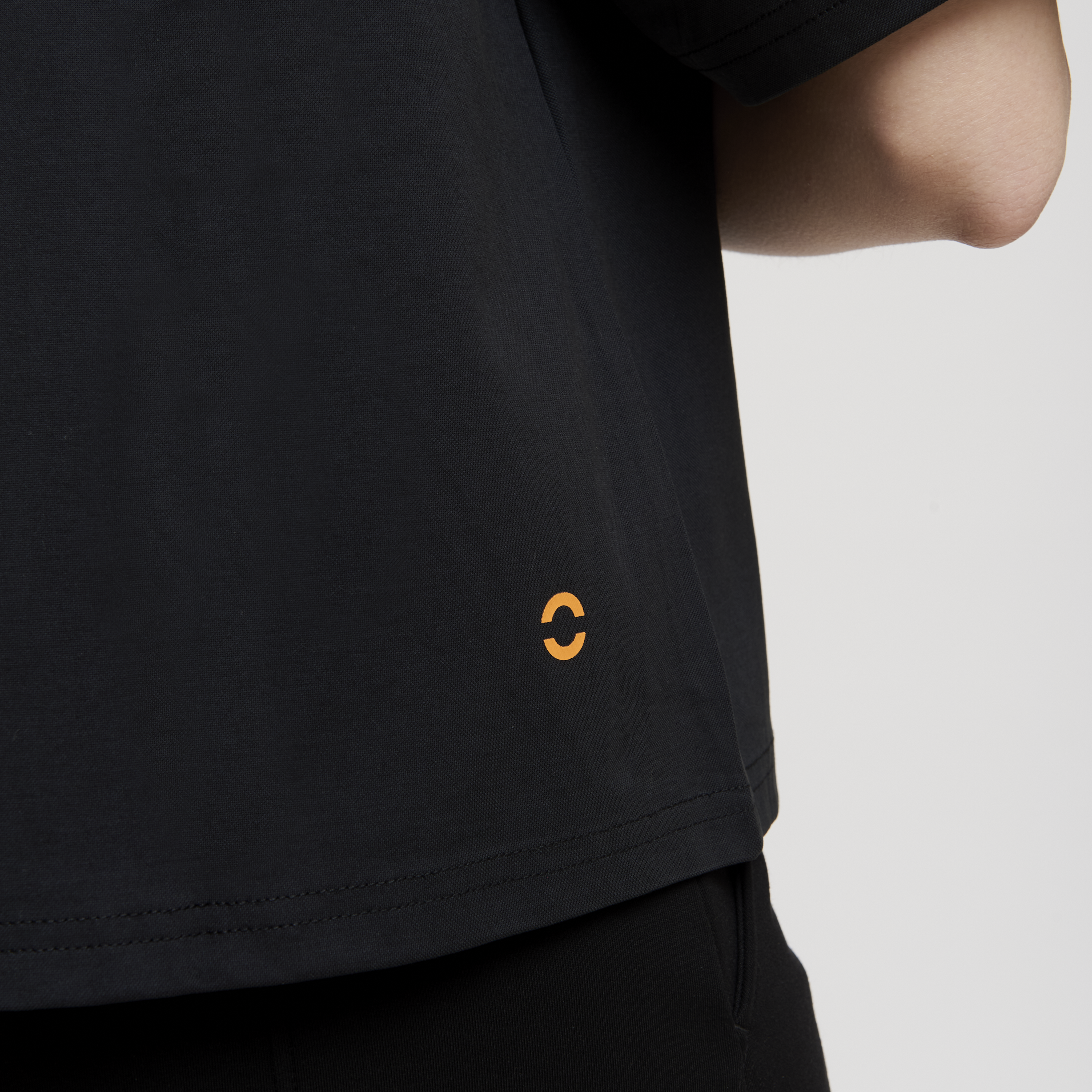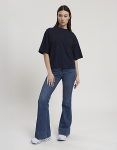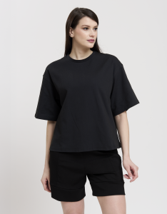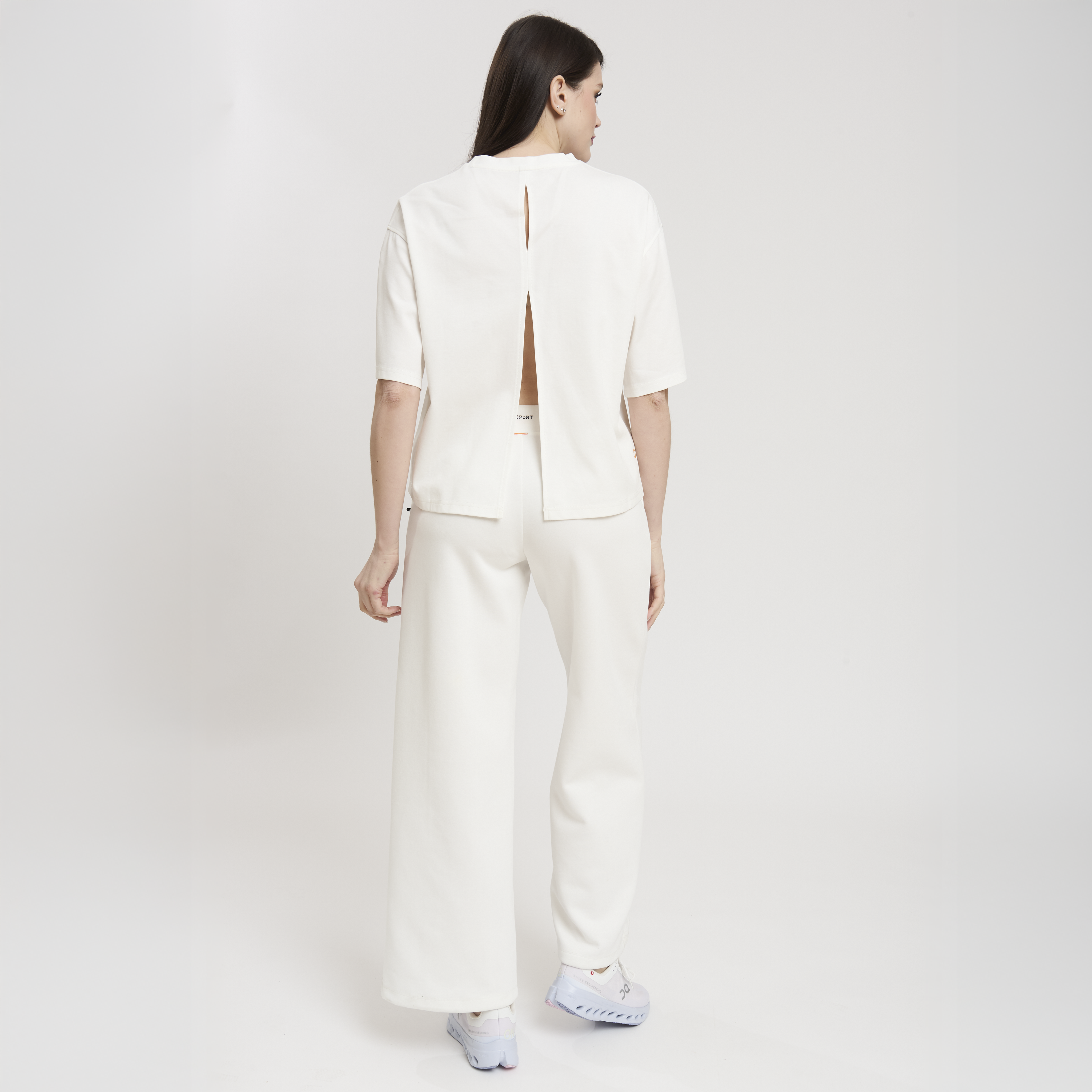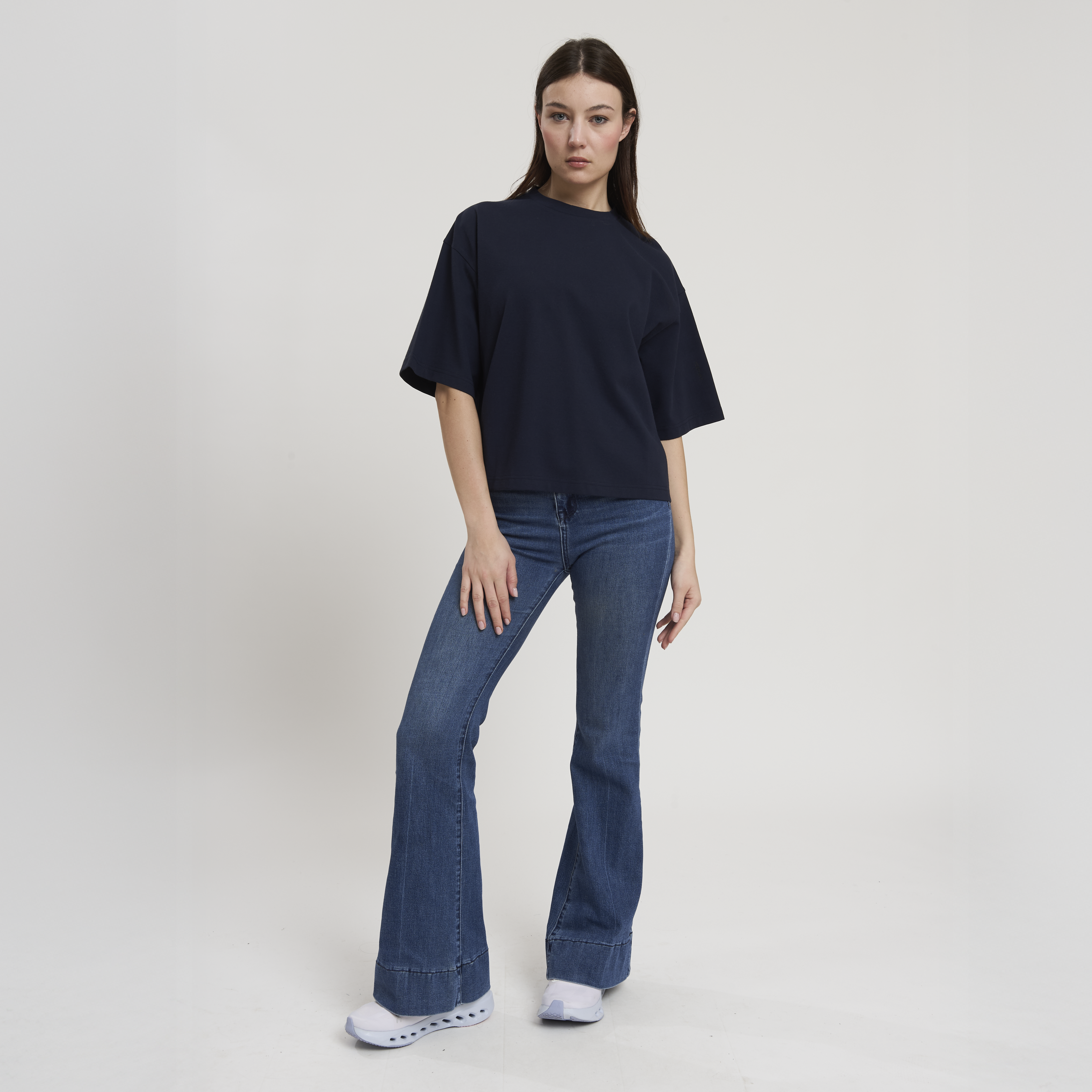 • Concept: T-Shirt dal taglio rilassato. Manica al gomito. Piccola apertura sulla schiena in alto e spacco sul fondo