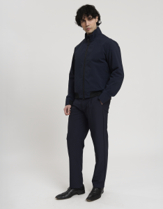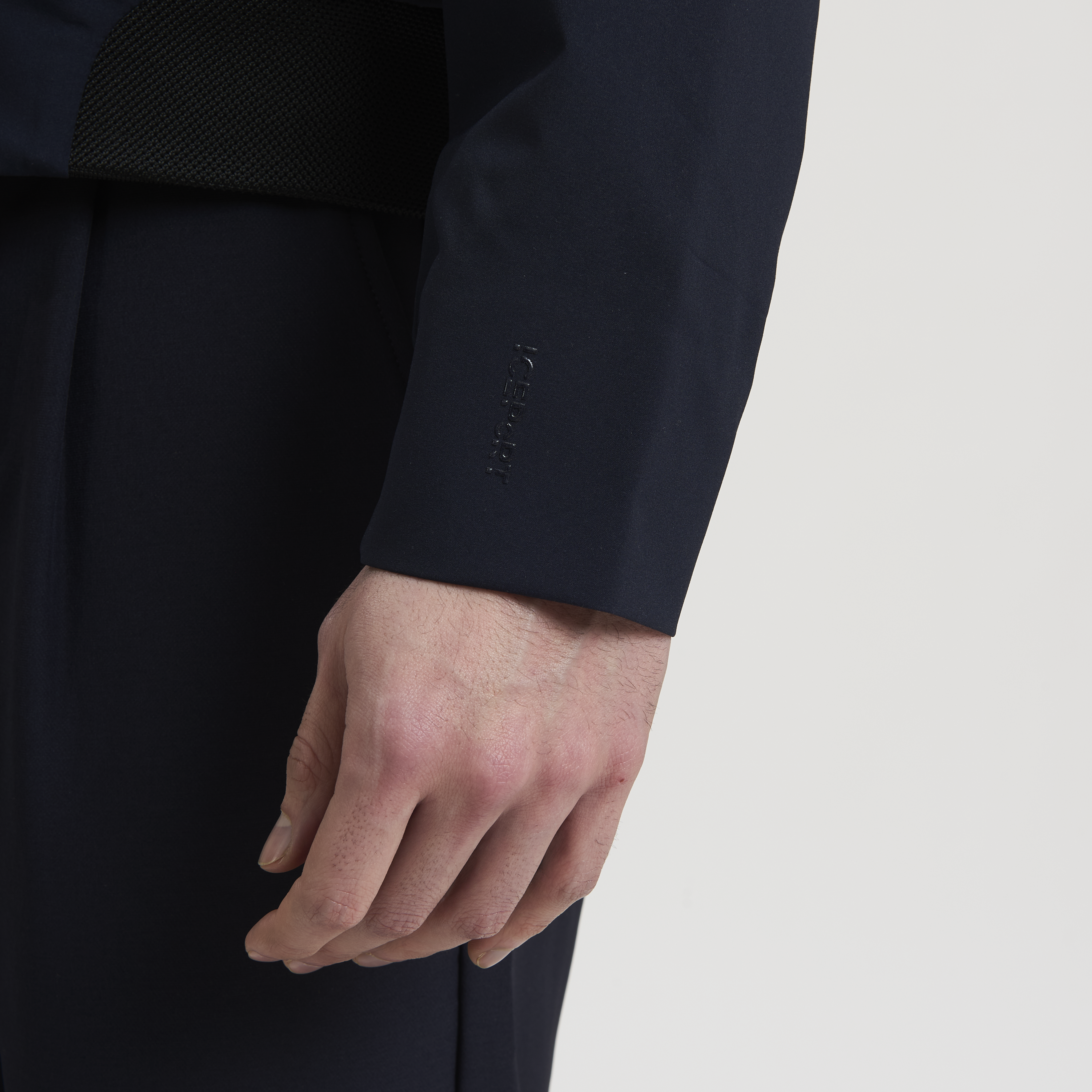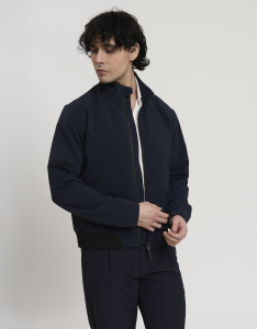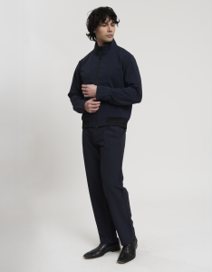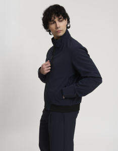• Concept: Bomber tecnico . Fopndo e polso con inserto in costina jacquard in colore nero. Doppia tasca vita con zip invisibile, zip centrale con doppio cursore con puller logato removibile