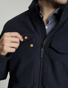 Field jacket 4 tasche in ergosoftshell, polsini in lycra e doppio cursore. water repellente e wind break.